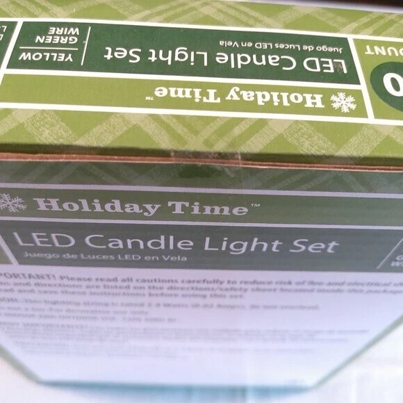 10 Count LED Candle Light Set Yellow Light With Green Wire Indoor and Outdoor Use 4.5 Ft(1.37m) Long -Lasting 25,000 Hour Bulb Life UL 120V 60 Hz AC 2.4 Watts(0.02 Amps) Sealed Box Unopened, New Year: 1990-2004