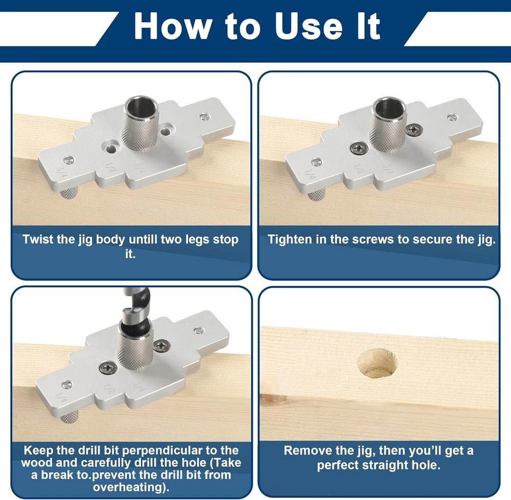 Store New Arrivals Add to Favorite View Feedback Contact Floating Shelf Bracket Dowel Jig Kit with 1/2" X 9" Drill Bit, Self Centering Description Item model number MGDowel001 Part Number MGDowel001 Style Dowel Jig Kit Mounting Type Wall Mount Color Silver Brand MaxxGeek Material Aluminum, Steel Item Depth 6 inches Batteries Required? No Item Weight 8.8 ounces Package Dimensions 9.69 x 2.05 x 1.97 inches Manufacturer MaxxGeek Perfect Woodworking Tools for floating shelf lovers installing the hidden bracket hardware to make their shelf support invisible from outside. Self Centering Drill Guide: Just twist it, fasten it and the Jig will be perfectly centered to drill a straight hole. 9'' Drill Bit Included: You have all you need to drill perfect straight holes for floating shelf bracket 1/2" x 6", 1/2" x 8" and more. Exquisite 2-in-1 Design: Features a centering doweling jig with a practical center scriber for marking of line 1/4", 1/2", 3/4". Before You Begin: You need to lubricate the drill guide collar every drill before to prevent the drill bit and collar from overheating. Product Description Floating Shelf Bracket Dowel Jig This clamp kit is an efficient tool specifically designed for DIY enthusiasts and woodworking professionals. Its unique design makes the bracket installation process simple and quick, eliminating the need for complex measurements and adjustments, greatly enhancing work efficiency. ABOUT US We offer the best prices around on high quality products. Our E-store includes media such as books, movies, music and games while offering electronics, toys, sporting apparel, clothing, tools, general home, garden items and more. SHIPPING We are always working hard to ensure your package arrives as soon as possible. Please understand that some factors like weather, high postal traffic, and the performance of shipping companies are outside of our control. We offer free shipping to the lower 48 states and ship within 2 business days of payment, usually sooner. We do not accept P.O. Boxes. Please provide a physical address. RETURNS We offer a 30-Day Return Policy on items which you are not completely satisfied with. You have the option for a full-refund or an exchange of the item. No returns are available on items shipped outside of the USA. PAYMENT We accept PayPal. CONTACT US This page content is yet to come Please ad us to your favorite seller and visit again later Thank You CUSTOMER SATISFACTION We try our very best to make sure every customer is completely satisfied. If there's a problem, message us! We're happy to help.