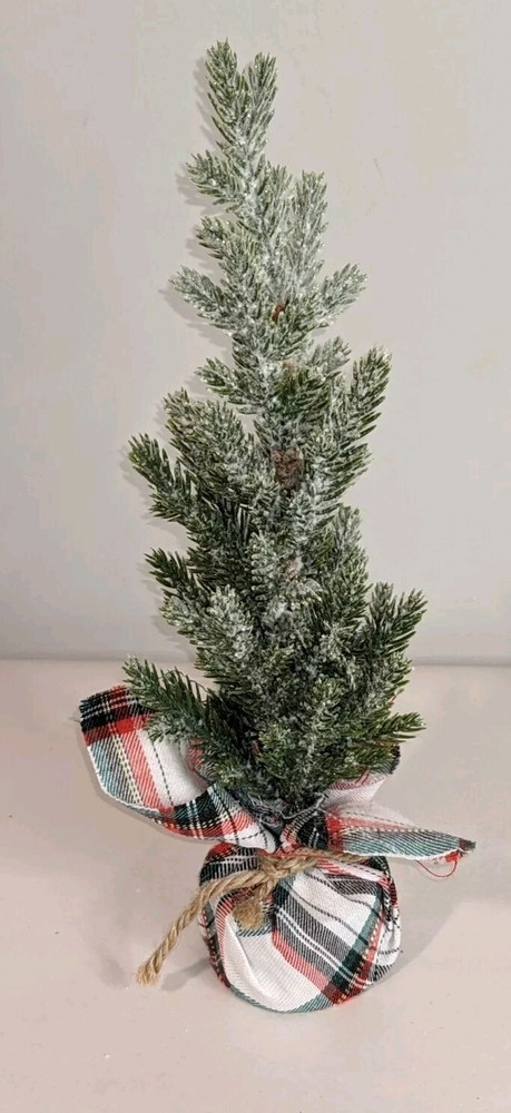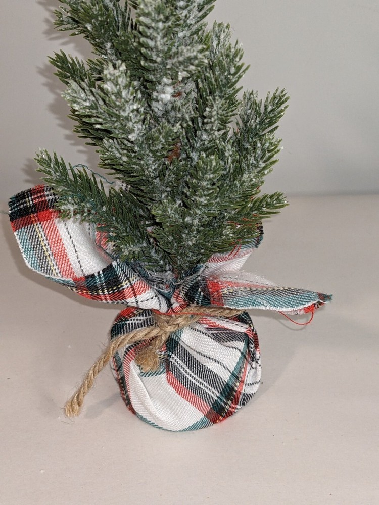 Frosted Accent Christmas Tree ~ Fir 11.5 Inch Tall ~ Plaid Fabric Weighted Base Great for Christmas and all winter decor!! Brand New See photos as part of the description Email any questions Thank you for shopping with us Bin#22