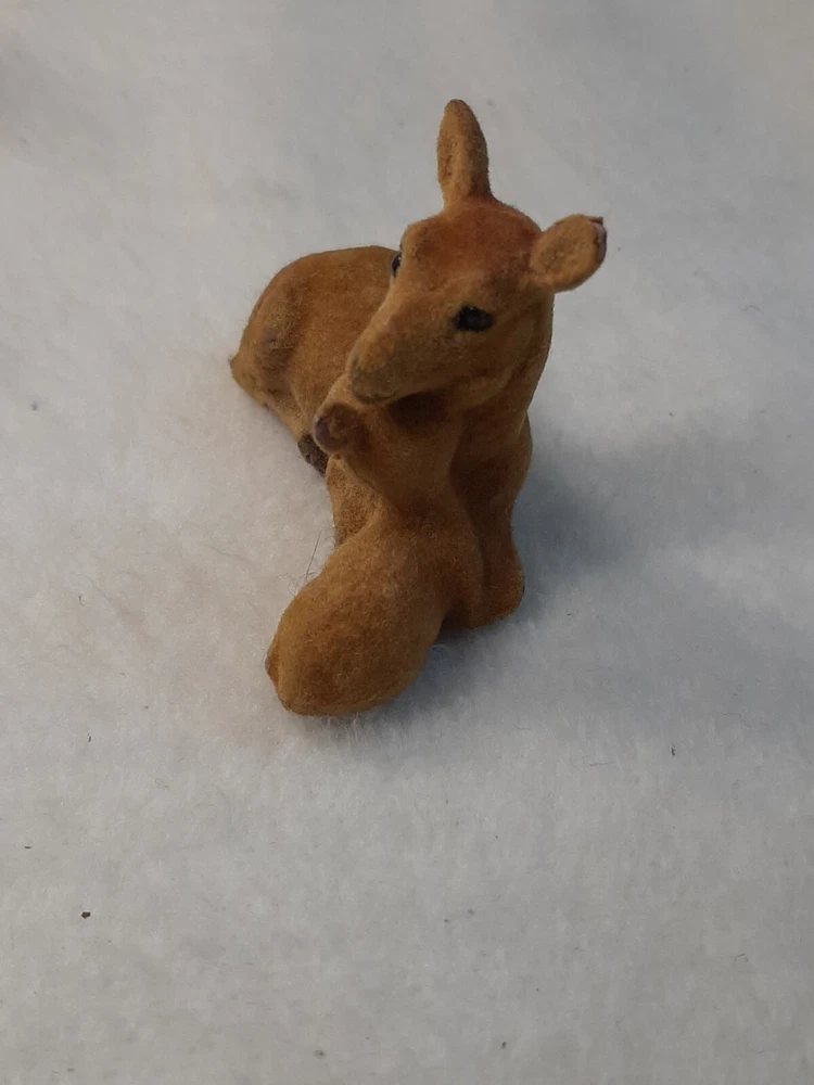 Flocked Vintage Deer Doe Fawn Figure Brown Felt Momma Baby Holiday Decor In good pre-owned condition may show signs of wear from use/handling/storage/display. Please view all pics for condition/details/flaws/issues. SOLD AS IS Some flocking missing on bottom. There maybe marks/spots/dirt/debris please see photos 1-14, there is flocking/paint loss/sticker loss please see photos 1-14, there is lite discoloration please see photos 1-14, there are surface scratches to item please see photos 1-14, please see all photos for condition/issues/details