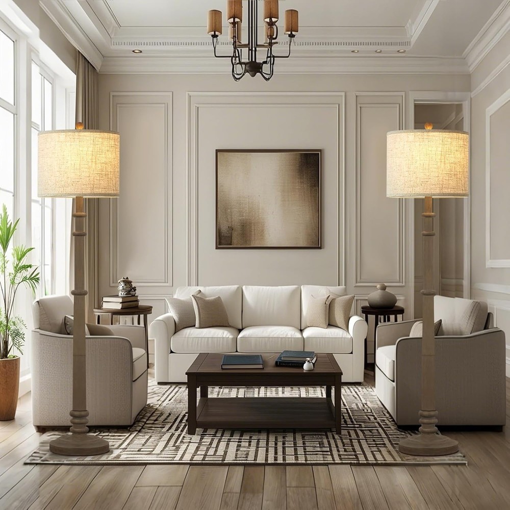 Floor Lamps for Living Room - 60" Resin Farmhouse Floor Lamp with Adjustable Color Temperatures - Vintage Standing Lamp Reading Light with Linen Shade Retro Tall Lamp for Bedroom Office, Grey 13"D x 13"W x 60"H