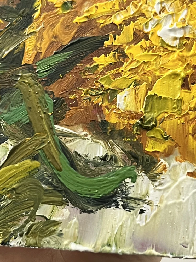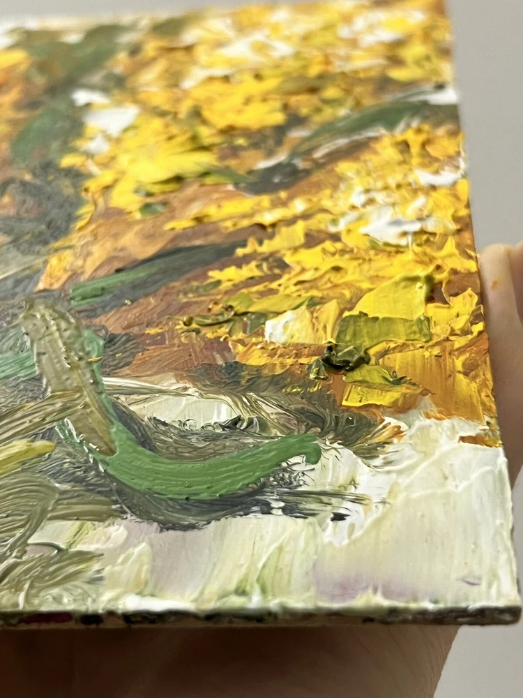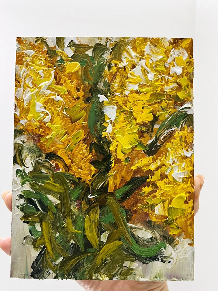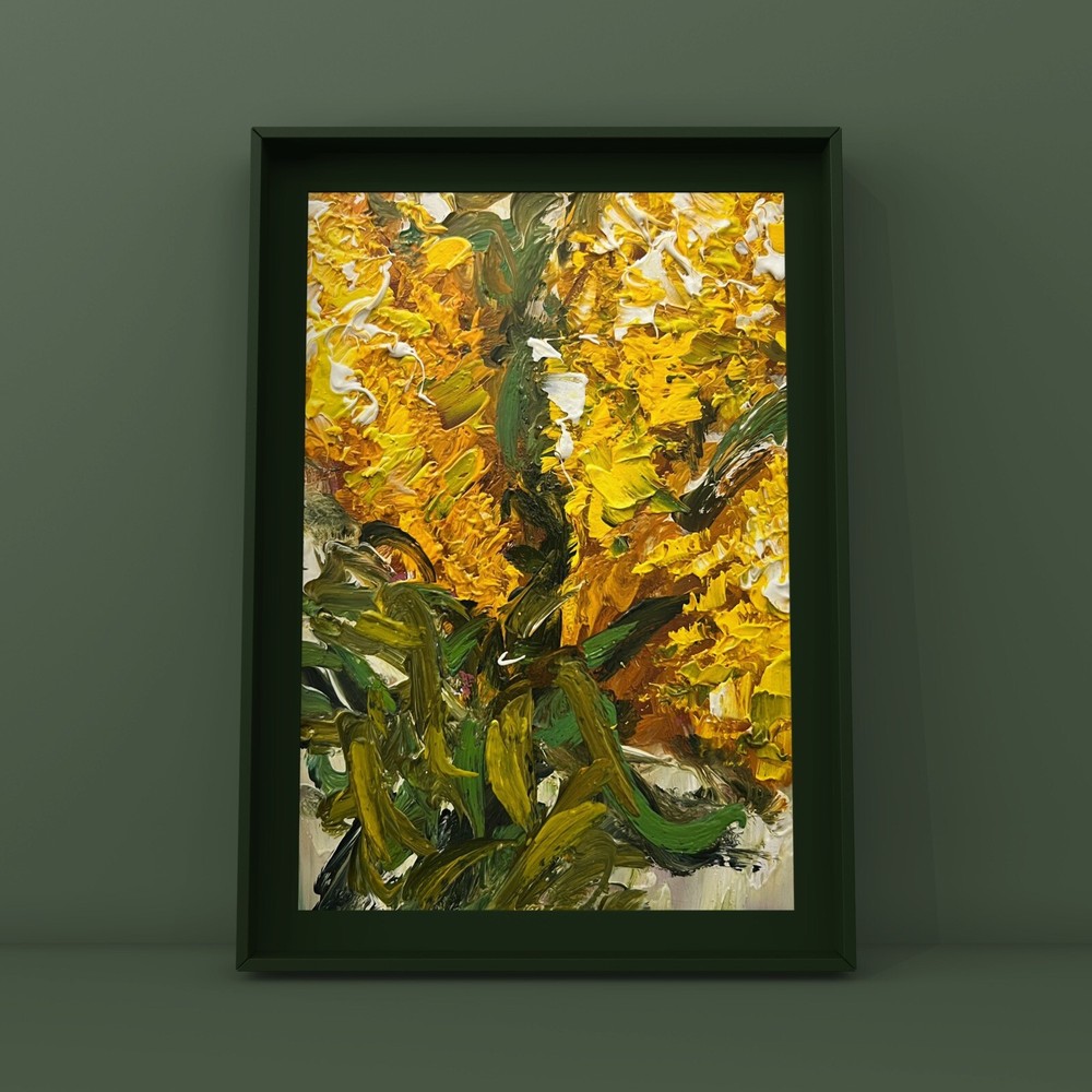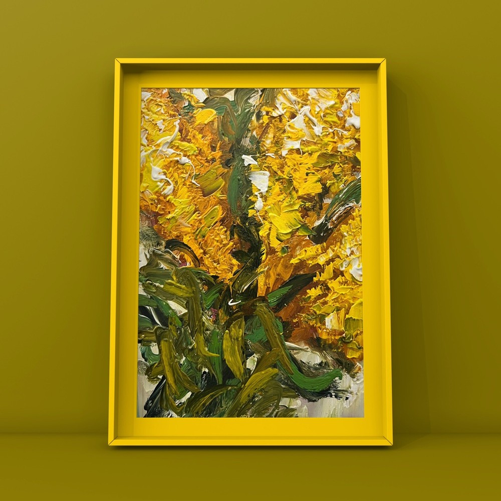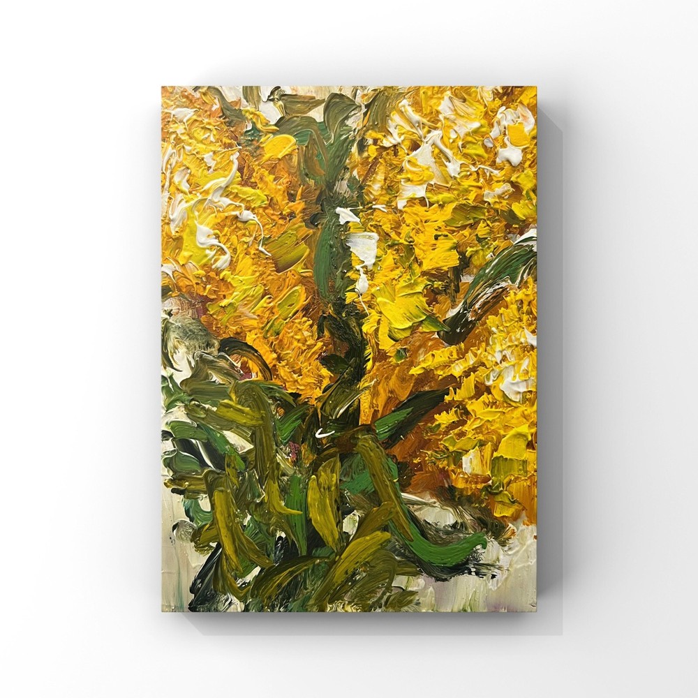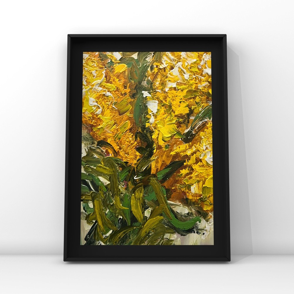 ๐ฟ Yellow bouquet still life oil painting. Yellow flowers original signed artwork. Impasto palette knife textured painting. Yellow tree branch flowers wall art. Original floral art. Impressionism small floral painting for bookshelf decor. Coffee table decor. Impressionism wall art. ๐ท Original author's oil painting on hardboard. Unframed. ๐ฟ Size: 15x20 cm / 6x8 inches . ๐ท Signed from the back . ๐ฟ Materials: professional oil paints, hardboard ,. Unframed . Need a decorative frame. ๐ท I use exclusively professional and safe high quality paints for artists in my artworks. ๐ฟ Each parcel is securely and beautifully packed, so you don't have to worry about its safety. ๐ท Please note that paintings are sent without frames. ๐ฟ Please note that oil paints take a long time to dry, so for new paintings, the delivery period may increase by 1-2 weeks.