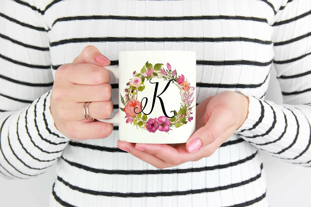 Floral Monogram Custom Monogram Mug Floral Mug Monogram Mug Floral Wreath Product Details.. This high quality 11oz. ceramic white mug has a premium hard coat that provides crisp and vibrant color reproduction sure to last for years. Perfect for all hot & cold beverages. The highest quality printing possible is used. It will never fade no matter how many times you wash it. Material: 100% Ceramic. Print both sides. Dishwasher and Microwave Safe. High Gloss + Premium White Finish. Printed in the U.S.A. Personalized & Custom. We support personalized and custom mug to add custom, when placing an order, you can add notes to the "order note" in shipping address section. Also you can contact us directly via message. Shipping Info. Ready to ship in 1 to 2 business days, All products are made-to-order and proudly printed in the United States. Shipped by USPS and DHL, You will receive your order in 5-7 days. Replace & Refund. All products are defective during shipping broken, chipped will be replaced free of charge. You are not satisfied with the product, we will refund 100% money to you. If any other issues arise, please do not hesitate to message, we would be more than happy to assist you.