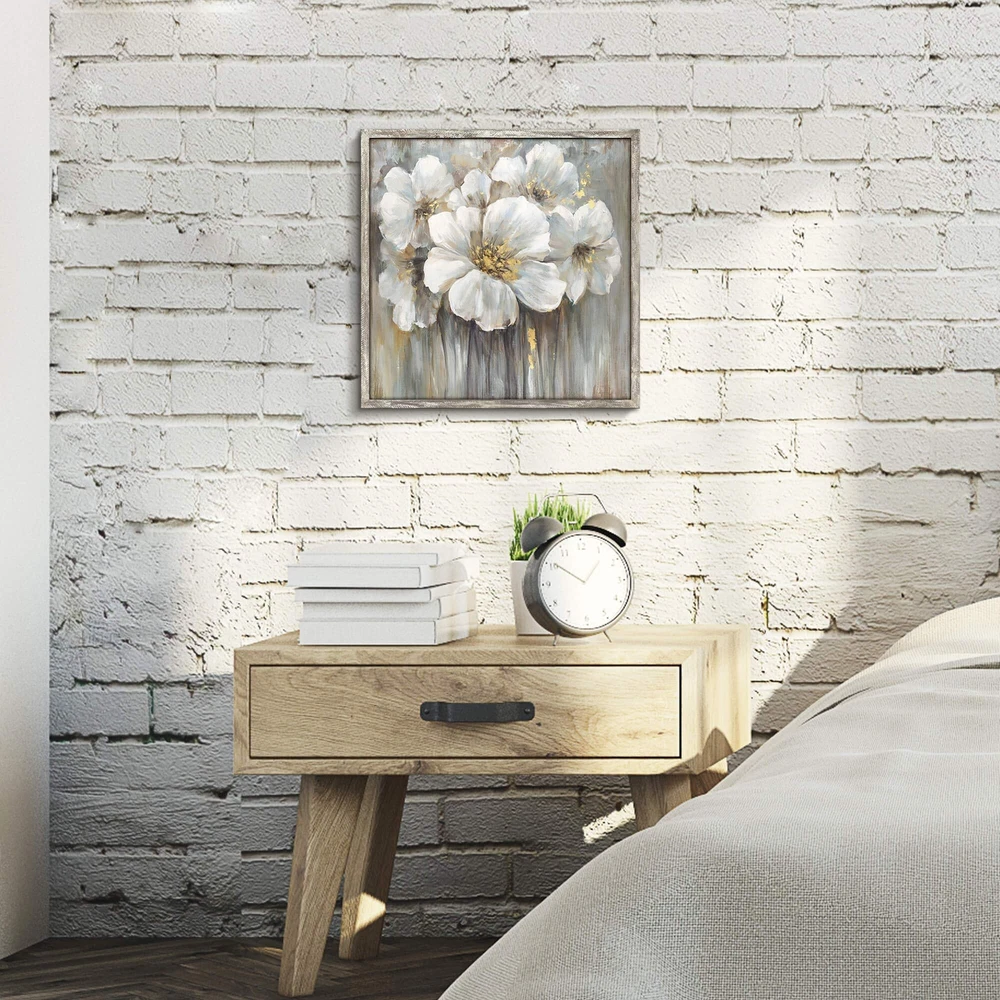 Flower Wooden Wall Art: With beautiful flowers in full bloom, the creamy off-white tone of this abstract flower wooden wall art smoothly transcends any room into calm space Floral Wooden Prints Framed: Spruce up your space with a floral focal point when you hang up this flower pictures, perfect important days gifts for yourself or someone special Botanical Prints Wall Art: High-quality wood as raw material, floral wooden wall decor printed by fade-resistant archival inks. Giclee print making afford makes the reproduction virtually identical from the original art, sustainable solid wood frames is durability and stability Flower Wooden Painting: Wall-mounting hardware included, right out of the box for effortless installation, the floral wooden prints framed is ready to hang as soon as it reaches your door Floral Wooden Wall Art: The botanical prints wall art includes 1 panel (12x12 inches). Wipe the plant artwork framed with dry cloth only. Copyright licensed image with high resolution definition