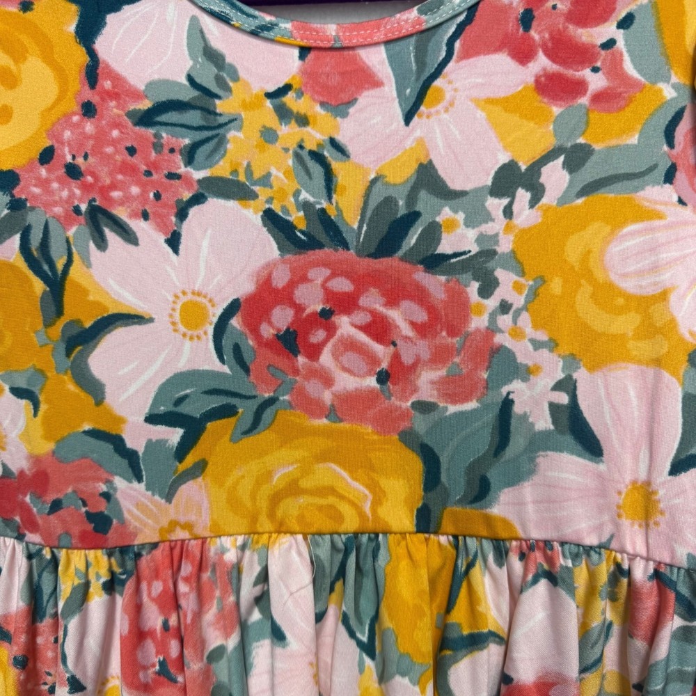 New with tags dress size 8/10 DotDotSmile Multi color flowers empire dress with flutter sleeves back neckline is lower then the front neckline cool slinky materials 95% polyester 5% spandex 416 Size: Girls 8 Condition: New With Tags