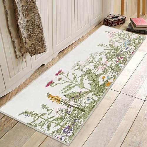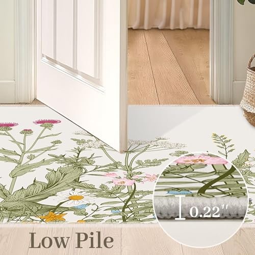 Vintage Floral Entryway Rug, 2x3 Kitchen Rugs Non-Slip Washable Indoor Door