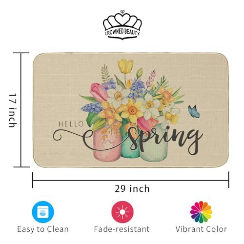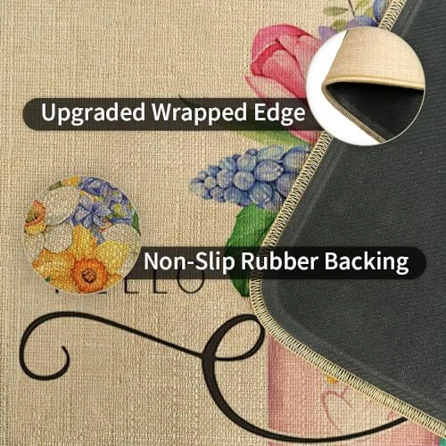Return Policy Fast Delivery Trusted seller Spring Door Mat Floral Indoor Doormat, Front Porch Entry Floor Rug for Outdoor Decor 17x29 Inch Product Description [Size]: Measuring 17 x 29 inch, our Spring Door Mat fits perfectly for your front door, porch, patio and outdoor indoor entryway. Featuring a 0.25-inch slim profile, this door mat is flat with no sides curling up that won't get in the way of the door opening and closing. [Hello Spring]: Designed with vivid spring-themed pattern, this door mat is exquisite and perfect for your Spring decor. Our decorative spring doormat can help complete and put the icing on the cake for your seasonal decorations, also makes a great gift for your friends and neighbors. [High Quality Material]: Made of great quality fine sewing linen, the upgraded wrapped edges of our door mat are nicely stitched. Backed with non-slip rubber, which is designed to reduce the risks of trips and slips, make sure you and your guests can safely enter and exit your home. [Durable & East to Clean]: Made with high quality material, our spring door mat is fade-resistant and hard-wearing that can withstand multiple seasons of use. This spring door mat is machine washable, hand washable and easy to clean. To remove the dirt, spray with a hose or use a sponge and mild detergent. Do not bleach or dry clean. Please wring out and air dry. [Risk-Free Guarantee]: In order to meet your complete satisfaction, we provide Risk Free 30-Day Money Back Guarantee. Shipping Returns Payment Shipping Shipping is FREE to all addresses other than APO/PO boxes in the lower 48 states. All our stock ships from US-based warehouses. Shipped via USPS or UPS (depending on location and package weight) Unless stated otherwise, all orders will ship within 24-72 hours of your payment being processed. Check our feedback to see the great reviews of FAST shipping we offer. Returns Seller does not accept returns Payment We currently accept payment via eBay managed payments only. Once payment is cleared, we will dispatch your shipment within 1-3 business days. Please refer to the "Shipping" tab for more information regarding shipping speed to your destination.