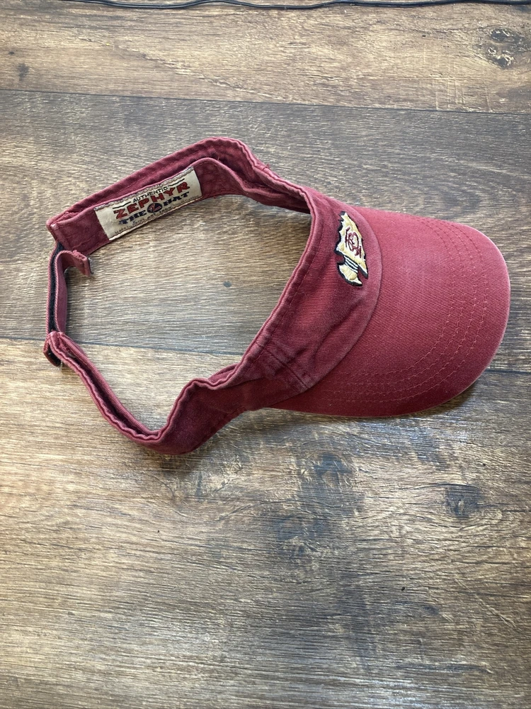 Show your support for the Florida State Seminoles with this maroon Zephyr visor hat. Perfect for football fans, this strapback cap features the team's official logo and is adjustable to fit any head size. Whether you're cheering on the Noles from the stands or watching from home, this hat is a must-have accessory for any fan. It's officially licensed, so you can be sure that you're getting a high-quality product. The hat is suitable for both men and women and is ideal for regular season games. The color is a vibrant maroon that will complement any outfit, making it a versatile addition to your fan apparel collection. Get your hands on this stylish hat and show your support for the Florida State Seminoles today!
