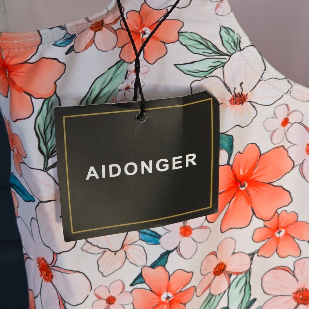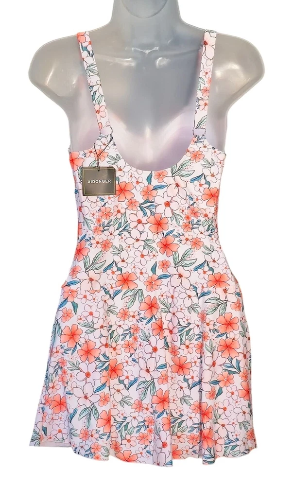 This sleeveless floral dress is crafted from a polyester/nylon blend with a touch of spandex for added stretch. Its built-in bra and lightweight material offer comfort and support. • Built-in bra for added support • Sleeveless design for warm weather • V-neckline for a flattering fit • Lightweight and breathable fabric • Machine washable for easy care Features: • Light, Non-Removable Padding • One Piece Swim Dress, Adjustable Straps Size: Womens L Measurements: Across Chest 15 in / 38 cm Across Waist 13.5 in / 34 cm Across Hips 17 in / 43 cm Total Length 30 in / 76 cm Condition: New With Tags NWT No Smoking Workspace Please review all photos closely before purchasing, buy responsibly, thank you. Please read the description for further details and measurements, Thank you!