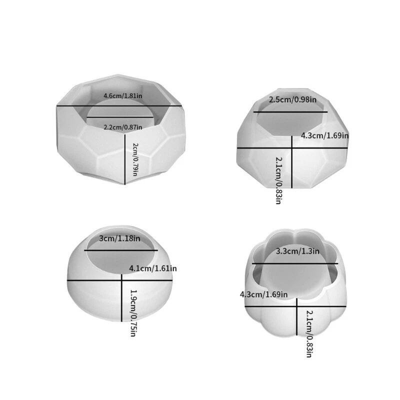 Flower Shape Candlestick Silicone Mold Epoxy Resin Mold DIY Storage Box Tool Features: Unique and adorable, this set of flower shape storage box molds is designed to catch people's attention. for DIY enthusiasts who enjoy creating personalized Made from grade silicone material, these molds are safe to use and can bear high temperatures. Their soft and durable characteristics make it easy to remove the finished products without tearing or wearing out. Great for handcraft lovers and DIY enthusiasts, these molds allow them to unleash their creativity and make customized storage boxes or other handicrafts. Whether displayed at home, in or at a handicraft market, the unique and exquisite flower shape storage boxes using these molds will add a touch of charm to any setting. Not only for organizing small items like keys and jewelry at home, but also a great choice for friend, family, or colleagues who appreciate handmade and items. Specifications: Silicone Size: L/S (as shown in the picture) Package Includes: 4pcs/set Silicone Mold note: Please allow 1-2cm errors due to manual measurement, make sure that you do not mind before you order. Due to the difference between different monitors, the picture may not reflect the actual color of the item.