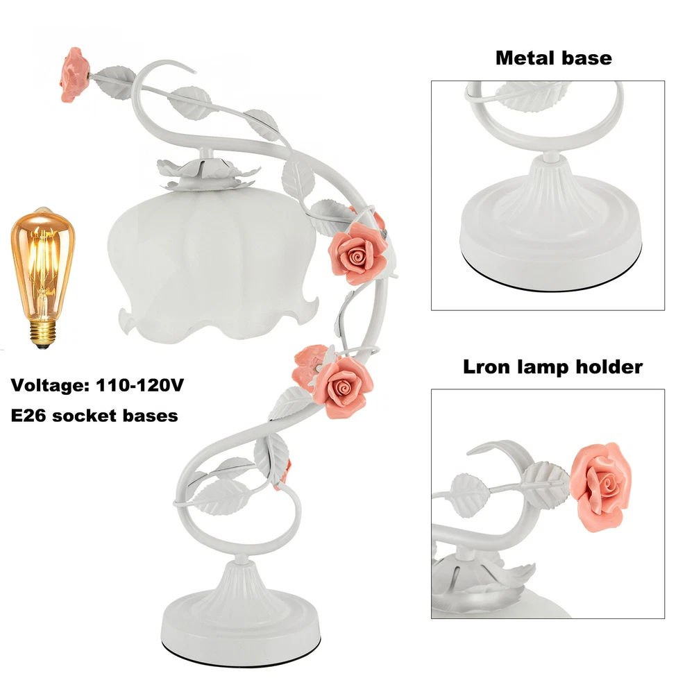 Flower Table Lamp Lily Shaped Glass Green Bedside Desk Light Gorgeous Ornament Flower Glass Table Lamp with 7.48 inches Wide Bent Glass Lampshade, 20 inches Tall Description Rose table lamp can be used in living room, kitchen and bedroom, which is artistic and provides loving and cozy atmosphere in your home. It will accompany you to witness the traces of the years, feel a realm, and taste life, mood, and romance. Key Features Charming Design: With a swan-neck lamp holder, twining white leaves, flower-like lampshade, and pink roses, it will be praised by many guests when you put it at home and it will attract more guests when in a store. Decorative Effect: In addition to the lighting function, this lamp's retro style and fresh color matching can add color to any room. Build to last: Made of glass, ceramic and painted iron, it remains beautiful and practical for a long time. Convenient to Use: You can use the button switch to turn on/off the light, and the length of the power cord is up to 5.9ft², so you will not worry about the distance to facilitate your daily use. High Stability: The thickened base provides nice stability and will not fall easily. Ideal gift: The flower language of pink rose is naive and pure, which symbolizes romance, nobility and beauty, so this exquisite table lamp is ideal to give as a gift to family or friends. Protective Shipping: We take down pink roses in case of breaking during shipping, and then package them in another bag. You can contact us if you have any problems in installation. Customer Service: We are honored that you have chosen our product. We have sufficient confidence in the quality of the product so that you can buy it confidently. But if you have any questions, you can contact our customer service, he will patiently answer and solve your problems. Details Unique Lampshade: The lampshade is treated with a drawing process to present cloud texture and soften the light. E26 Lamp Holders: This product uses standard E26 lamp holders to facilitate the installation of various bulbs. Application It is recommended to be used as a table lamp with a lighting size of 32-54sq.ft room. This white rose lamp is suitable for use as decoration in offices, living rooms, dining rooms, bedrooms, hotels, and other places. Specifications Texture: Glass, Ceramic and Iron Color: White and Pink Assembly Required: Yes Plug Type: US Standard Efficiency: E Voltage: 110V Lamp Holder: E26 Blub Included: No Max. Power: 60 w Product Height : 52.00cm(20.00 in) Base Width: 14.00cm (5.51in) Lampshade Width: 19.00cm (7.48 in) Lighting Area: 3-5m²(32-54ft²) Power Cord Length: 1.8m/5.9ft Package Included 1* Glass Lampshade 1* Iron Lamp Holder 6* Ceramic Roses. Notes 1.Please note that bulb is not included in the package. 2.Please allow the slight color difference caused by the shooting light and 1-3cm error due to manual measurement, and make sure you do not mind before you order. Payment Delivery details Terms of sales About us Contact us Payment We accept ebay payment 。 Fees such as import duties, taxes are not included in the item price or shipping costs. These charges are the buyer's responsibility. Delivery details Shipping: 2-9 working days to: USA Terms of sales We maintain high standards of excellence and strive for hundred percent customer satisfaction. Feedback is very important to us. We hope that you contact us immediately before you give neutral or negative feedback, so that we can address your concerns. It is impossible to address issues if we do not know about them! About us Your satis faction is our ultimate goal. We work hard to earn your trust and future business. Our certified technicians have tested each item before shipping. The unit comes with 1 year limited warranty on all manufacturing defects. a) If you receive a defective item, you may return it or ask for a discount. Please contact us within 14 days after you receive the package. b) What you returned must be intact and in its original packaging as re? u. Customer is responsible for shipping costs of the returned item. c) We will cover the cost of shipping back t with the shipping rate indicated in the registration page. We will send you a new unit or refund the full payment you paid. Thank you. Contact us Business Hour Business Hour: Monday To Friday: 8:30 AM to 5:00 PM (Beijing China time) Due to time zones, our reply to your questions may not be immediately. But within above working time, we will reply your email within 24 hours. If it's non-workdays, please kindly be patient and wait till Monday. Please contact us with ebay message. Please feel free to contact us if you have any questions. Monday To Friday: 8:30 AM to 5:00 PM (Beijing China time) Due to time zones, our reply to your questions may not be immediately. But within above working time, we will reply your email within 24 hours. If it's non-workdays, please kindly be patient and wait till Monday. Please contact us with ebay message. Please feel free to contact us if you have any questions. Brand Unbranded Type Bedside Lamp Lighting Technology E26 Power Source Corded Room Attic, Bedroom, Dining Room, Home Office/Study, Living Room Features rose Shade Color White and Pink Cord Color White Installation Area Indoor Mounting Free Standing Department Kids, Teens, Adults Style Art Deco Material Glass, Ceramic and Iron