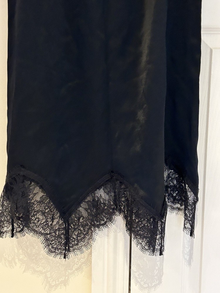 River Island black satin skirt with lace trim. New unused with tags. Selling as return window closed and wrong size. Current collection RRP £40.