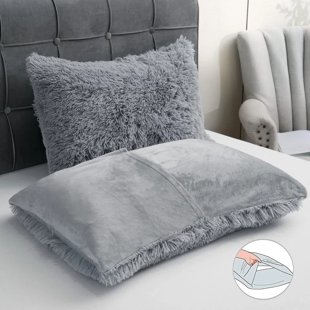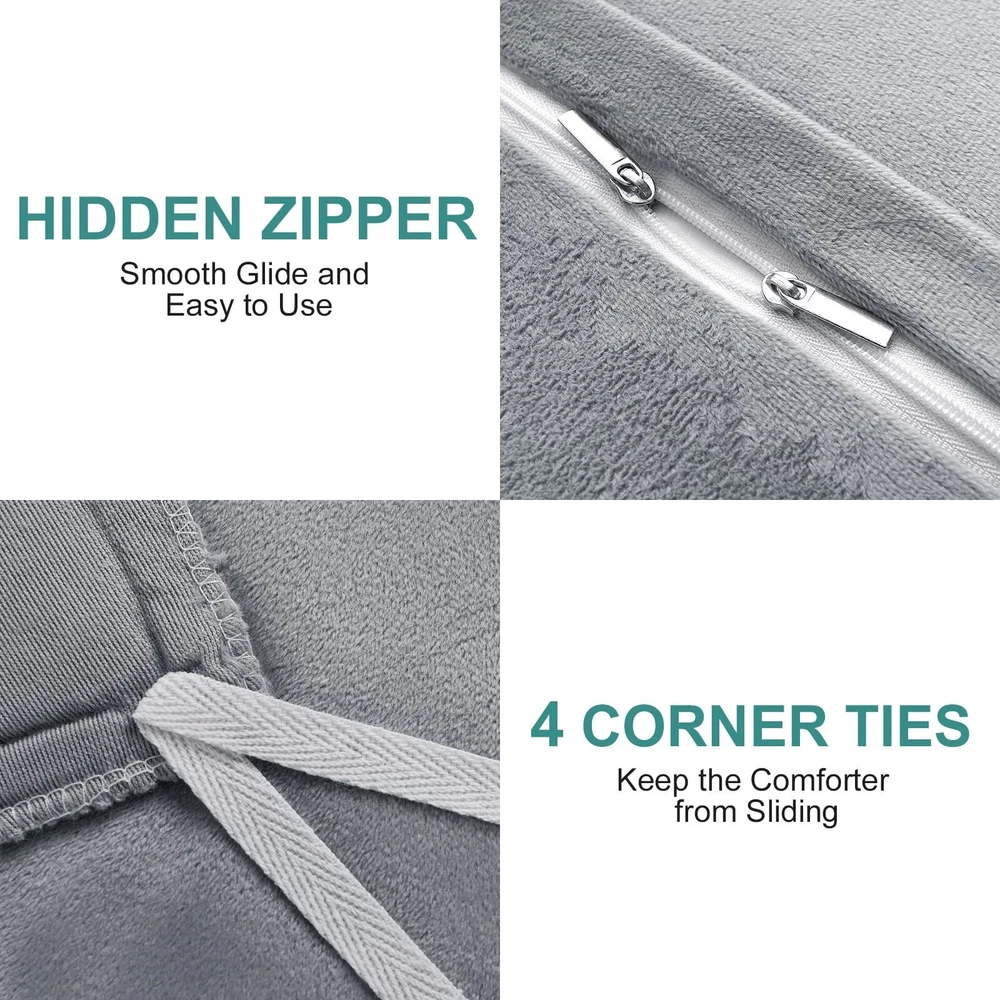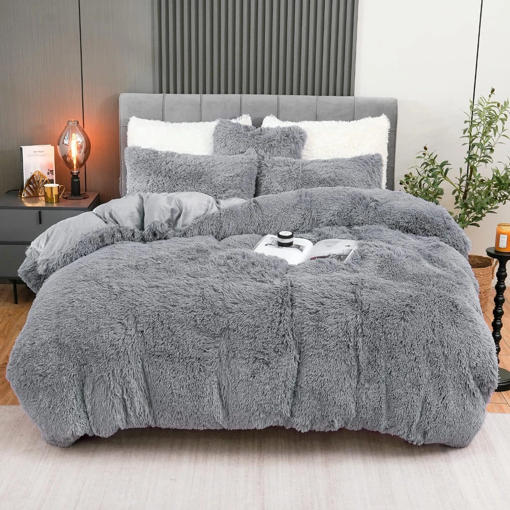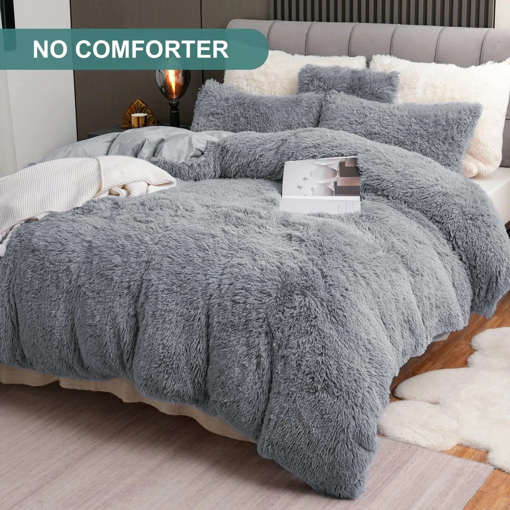 【LUXURY AND SOFT】 The front of the fluffy comforter cover is microfiber plush, which is super soft and comfortable. The back is silky velvet fabric that is delicate and skin-friendly, locking in warmth, gives you a warm and cosy sleep in the cold winter. 【WARM, COZY & STYLISH】 This fluffy bed set brings you the ultimate comfortable sleep experience, like sleeping on a cloud so you can fully relax in your bed. The stylish solid color design adds luxury to your room and is the perfect choice for updating your bathroom. It’s also a warm gift for your family, friends or colleagues, making them feel your caring. 【EASY TO INSTALL】 The faux fur comforter cover has a zipper closure at the bottom, and the metal zipper is smooth and durable, easy to disassemble; The 4 corner ties inside the plush comforter cover helps keep the quilt in place and prevent slipping for comfortable sleeping at night. 【OPTIONAL SIZE】 The light gray shaggy duvet cover set includes 1 x Queen size duvet cover (90"x 90"), 2 x Pillowcases (20" x 26"), and 1 x Throw pillow cover (18" x 18"). Note: Quilts and sheets are not included. This grey fluffy duvet cover set comes in a variety of colors and sizes so you can choose according to your preference and bedroom style. 【CARE INSTRUCTION】The comfortable fuzzy bedding set can be machine washable in cold water, gentle cycle, tumble dry low, do not bleach, do not iron. To protect the fur, turn it inside out when cleaning. We recommend cleaning before first use. Please feel free to us if you have any question, we will reply you within 24 hours and give you a satisfied answer.