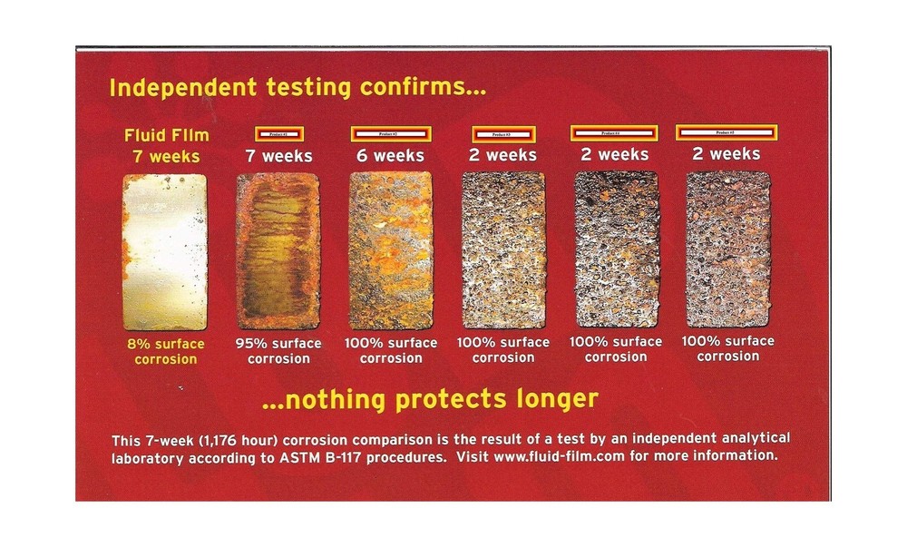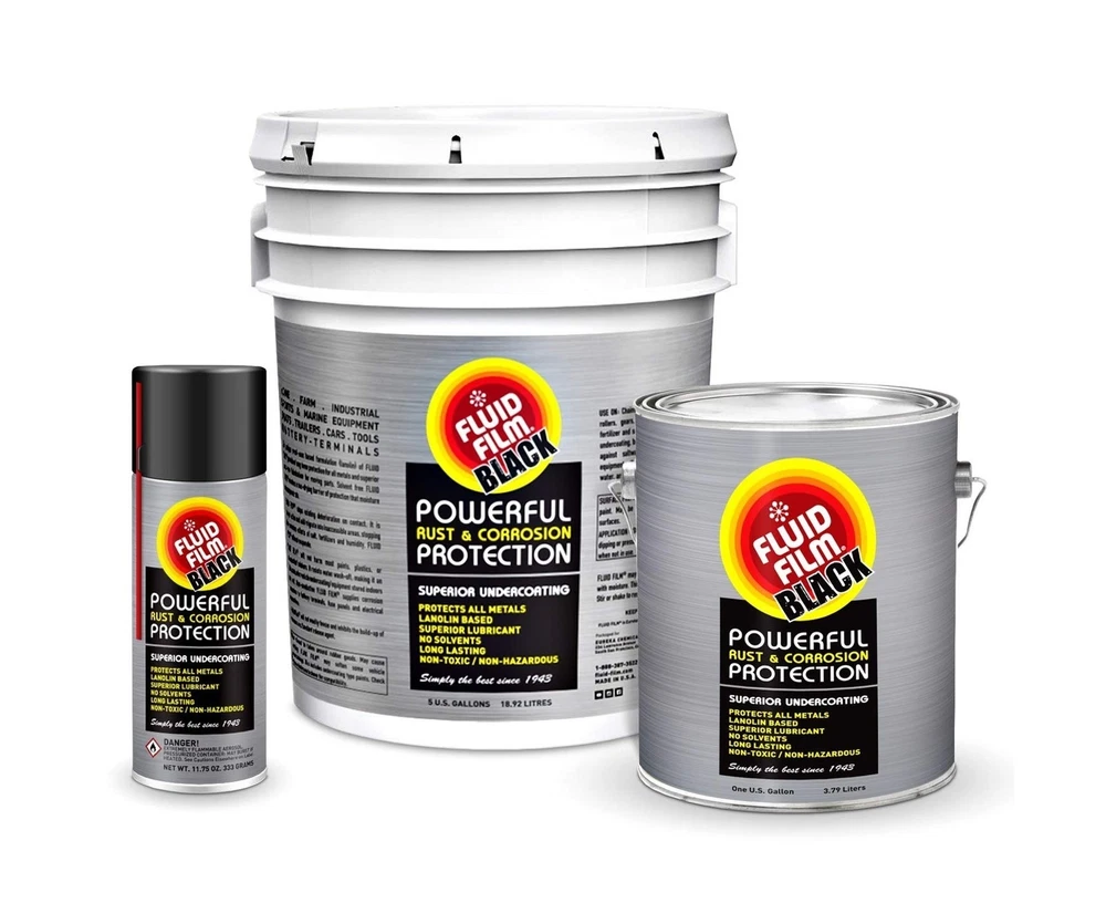 Fluid Film Black Non-Aerosol, Long Lasting Corrosion, Penetrant & Lubricant, Anti-Rust Coating, Protects All Metals in Marine and Undercoating in Automotive & Snow-Handling Vehicles, 5 Gallons Description FLUID FILM BLACK is a penetrant and lubricant powerful corrosion protection for all metals and superior lubrication for all moving parts. A non-toxic, long lasting, thixotropic liquid used in the highly corrosive marine environment of ships & offshore drilling rigs and vehicle undercoating in the automotive and snow-handling industries. Widely used for maintenance of garage door runners, locks, hinges & tracks, bicycle & motorcycle chains, tools, lawn & garden equipment - hedge trimmers and clippers, mowers, fertilizer spreaders & winterizing equipment. Vehicle chrome, door & trunk locks, hinges & seat tracks, battery terminals and electrical connections. Marine wire rope cables, rudder interiors & void tanks. Agricultural applicators & liquid fertilizer transfer pumps and industrial parts storage and shipping. Features: Category: Lubrication -- Lubricants and Penetrants HOW IT WORKS; The wet barrier creeps and migrates into tight seams and into the metal chassis to provide corrosion protection from salts and brines; Protects your vehicle while restoring a rich black color to the chassis or cover existing rust WIDELY USED for maintenance of locks & hinges at home, lawn & garden tools & equipment, as well as in the aviation and automobile industries; In government and commercial facilities; Equipment in fishing, gas companies, farming, salt, power and industrial plants SALVAGE DAMAGES; Damaged, heavily corroded and/or frozen parts such as nuts, bolts, shafts, etc; can be salvaged by applying FLUID FILM BLACK; It provides a non-toxic, non-irritating, non-flammable coating that remains in a permanently soft gel state Product Details: Product Dimensions : 17 x 12 x 12 inches; 39.2 Pounds Item model number : FLUFLM_NAS_19L_BLACK Date First Available : December 19, 2020 Manufacturer : FLUID FILM Best Sellers Rank: #36,629 in Automotive (See Top 100 in Automotive) #119 in Care Corrosion & Rust Inhibitors #119 in Care Corrosion & Rust Inhibitors Customer Reviews: 4.6 4.6 out of 5 stars 297 ratings Delivery We Do Not Ship Outside of the Continental US. Return Policy All items qualify for returns within 30 days of receipt. Seller is responsible for return shipping on any item that is not damaged. Feedback We take our reputation seriously, we buy and sell online, so we understand the value of trust. If you are unsatisfied with your order, please contact us and we will work with you to resolve it to your satisfaction. WELOCME TO BUY Timken GR224TUB Grease 19.97 USD Free shipping Slippery Pete Fluid Pump for Gallon Bottles and Wide Mouth Quart Bottles (Not... 26.48 USD Free shipping Permatex 09128 Copper Anti-Seize Lubricant, 8 oz. Pack of 1 8 oz. MACHINE 21.29 USD Free shipping Automotive White Lithium Grease 50ml Multi-Purpose Lubricant Set Car Door Han... 12.98 USD Free shipping High-Performance Brake Grease Lubricant, 5.29oz, Rust & Corrosion Protection,... 14.48 USD Free shipping White Lithium Grease, Garage Door Lubricant, Multi-Purpose Bike Grease for Hi... 12.98 USD Free shipping Ceramic Brake Parts Synthetic Grease 1 oz, Assembly Lubricant for Eliminating... 14.48 USD Free shipping Permatex 81343 Anti-Seize Lubricant, 1 oz. Tube , White 6.95 USD Free shipping Windshield Washer Fluid Ultra-Concentrated 11.48 USD Free shipping Keze Copper Anti Seize Thread Lubricant Grease Antiseize Compound Lubrication... 12.98 USD Free shipping Copper Anti-Seize Compound Thread Lubricant Grease Never Antiseize High Temp ... 12.98 USD Free shipping Universal Motorcycle Chain Breaker Tool #420-530 Chain Breaker Compatible wit... 14.48 USD Free shipping Prestone Bug Wash Windshield Washer Fluid, 1 Gallon 128 Fl Oz (Pack of 1) 18.98 USD Free shipping Muc Off 664US Nano-Tech Motorcycle Cleaner, 1 Liter - Fast-Action, Biodegrada... 26.48 USD Free shipping Maxima 77920 Synthetic Chain Guard - 14 oz. Aerosol 14 Ounces 25.26 USD Free shipping 3.4oz High Performance Penetrating Oil – Bike Chain Lubricant, Door Hinge 15.98 USD Free shipping Super Lube-21030 Synthetic Multi-Purpose Grease, 3 Oz. 3oz Tube 16.42 USD Free shipping AstraVox White Lithium Grease, Multi-Purpose Lubricant Lithium Grease with Br... 12.98 USD Free shipping Hot Shot's Secret Adrenaline Assembly Lubricant for Engines 4oz. Dry Start Pr... 15.98 USD Free shipping Rain-X RX11806D Washer Fluid Additive-16.9 fl. oz, 500. ml 9.52 USD Free shipping White Lithium Grease, Multi-Purpose Lubricant Lithium Grease with Brush, Gara... 15.98 USD Free shipping CRC SL3301 Synthetic Brake & Caliper Grease, 2.5 Wt Oz 20.2 USD Free shipping LOCTITE Automotive Silver Anti-Seize Lubricant: Heavy-Duty, Temperature Resis... 20.42 USD Free shipping Premium 2-Cycle Oil 16oz Easy to Measure Bottle 15.98 USD Free shipping