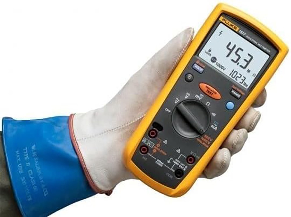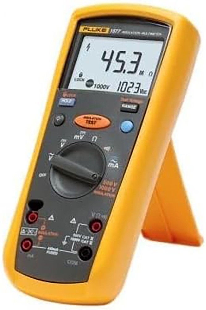 Manual and auto ranging digital insulation multi meter measures insulation resistance, current, voltage, and resistance for testing line insulation on motors, generators, cables, and switch gear True RMS meter provides accurate readings when measuring linear or nonlinear loads where the current or voltage has an undistorted or distorted waveform Insulation test voltages of 550V and 1000V and insulation measurement range of 0.1 to 600 megaohms Live circuit detection prevents insulation test when voltages over 30V are detected Safety ratings include Ingress Protection certified IP40; European Conformity (CE) marking; UL 61010 1; ANSI/ISA S82.01 2004; CAN/CSA C22.2 No. 1010.1:2004; IEC safety standards 61010 1:1002 and 61010.1 04, IEC61557 1; IEC61557 2; and IEC/EN 61010 1, 2nd edition for Category III installations up to 1000V and Category IV installations up to 600V, and Pollution Degree 2
