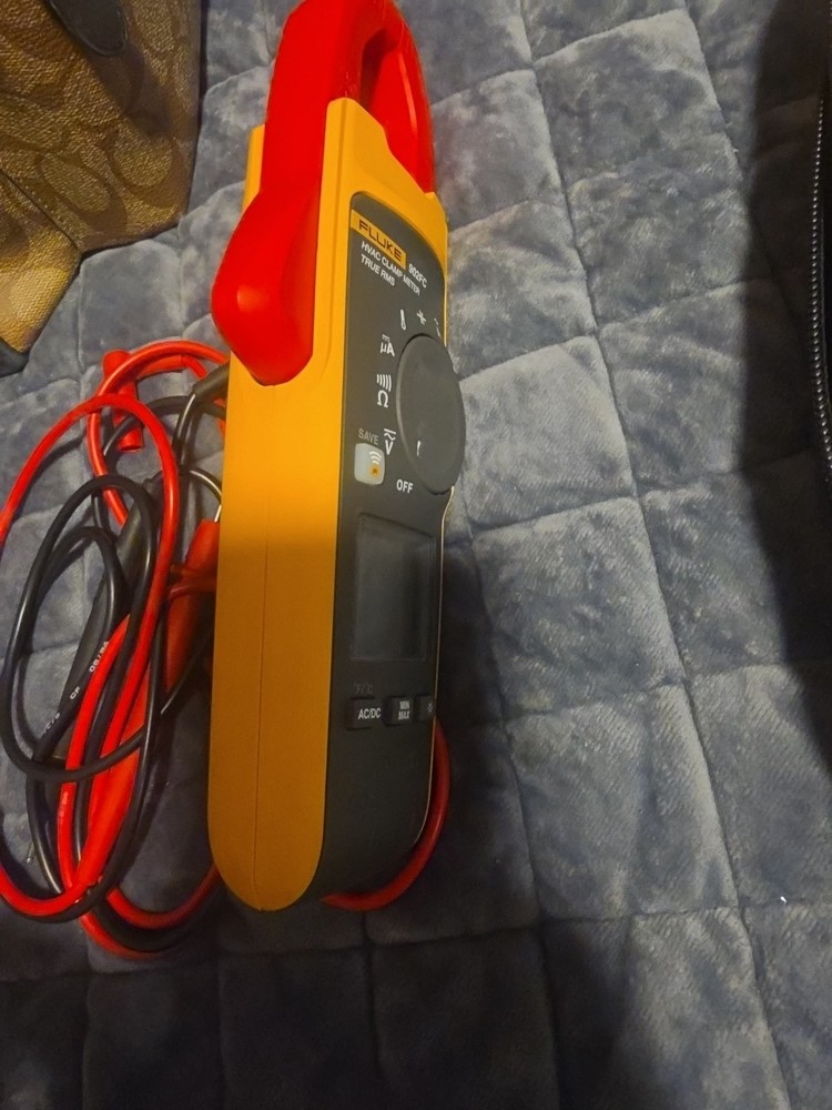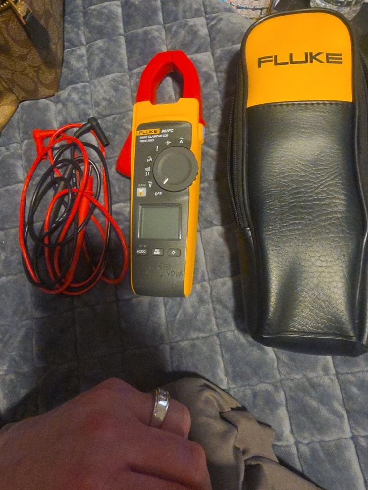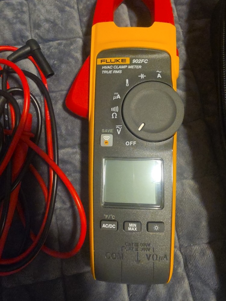 The Fluke 902 FC True-RMS HVAC Clamp Meter is a handheld multimeter designed for HVAC applications. It features a CAT IV measurement category, with a DC voltage range of 600V and an AC voltage range of 600V. The meter includes True RMS capabilities, a clamp function, and input protection features with a clamping circuit. With a digital display, the Fluke 902 FC also provides temperature and capacitance readings, making it a versatile tool for testing and measurement in the HVAC industry. Brand new but dont have box.