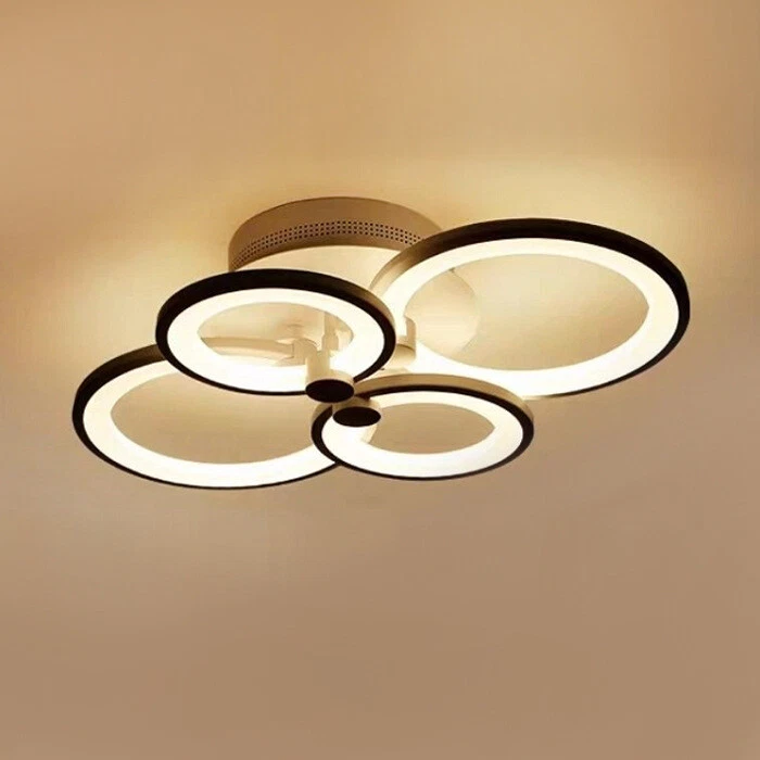 Specification: Material: Iron base and Acrylic lampshade Power: 45w ,72w, 140w Pattern: 4 Heads Voltage: AC 110v, 50Hz Body Color: black Light Source: 2835 LED SMD Light mode: stepless dimming Light color: White light, Warm light, Neutral light Average service life: 30000(h) Remote Controller: 2x AAA Batteries (not included) Suitable area: about 8-15㎡/15~25㎡ /25~30㎡ 4 Heads Size: 647mm*450mm*105mm Package Included: 1 Pcs Ceiling Light 1 Pcs Remote controller (battery Not included) 1 Set Screws accessories Flush Mount Lamp Chandelier Modern LED Acrylic Ceiling Light Living Room Remoted 4Heads Chandelier 3Color Light Change LED Ceiling Light Fixture Acrylic Specification Material: Iron Base and Acrylic Lampshade Voltage: AC 110v, 50Hz Power: 60w Luminous Flux: 6750lm Pattern: 4 Heads Body Color: Black Light Source: 2835 LED SMD Light Mode: Stepless Dimming Light Color: White Light, Warm Light, Neutral Light Remote Controller: 2x AAA Batteries Suitable Area: About 8-15m²/86.11ft²-161.46ft² Product Size: 64.7*45*10.5cm/25.5*17.73*4.14in Package Included 1 * Ceiling Light 1 * Remote Controller 2 * AAA Batteries All Accessories for Assembly Description The body of the ceiling lamp is creatively designed with four composed circulars with fine workmanship, bringing more brilliance to your life and highlighting your taste. This ceiling la mp is infinitely dimmable with three adju stable colors including white light, warm light, and neutral light, you can adjust it according to your own needs. This ceiling lamp is perfect for living rooms, balconies, bars, cafes, clothing stores, aisles, etc. It is suitable for an area of about 86.11ft²-161.46ft². Key Features Creative Design: The body of the ceiling lamp is creatively designed with four composed circulars with fine workmanship, bringing more brilliance to your life and highlighting your taste. High Durability: The lampshade of the ceiling lamp is made of acryli c that has good transparency, chemical stability, and weather resistance, so it is more durable and can be used for a long time. Remote Control : This ceiling light is equipped with remote control. So you can easily control the light while lying in bed and don't need to get up and press the switch. Good Light Transmission: This ceiling lamp made of acrylic has good light transmission, which can create a brighter and warm atmosphere for you. Stepless Dimming: This ceiling la mp is infinitely dimmable with three adju stable colors including white light, warm light, and neutral light, you can adjust it according to your own needs. Energy Efficient: This ceiling lamp adopts the LED light source, which is highly efficient, energy-saving, and has a long service life. Easy Installation: All the four light heads are connected, you do not need to modify the line when you install it, saving your time and energy. Guaranteed After-Sales Service: We aim to provide quality products and services, if you have any problems, please feel free to contact us. We will reply and solve the problem for you as soon as possible. Details Acrylic Lampshade: The lampshade of the ceiling lamp is made of acrylic that has good transparency, so it has better light transmission, which can create a brighter and warm atmosphere for you. Reinforced Base: The base of the ceiling lamp is made of reinforced iron, making it more stable. Application This ceiling lamp is perfect for living rooms, balconies, bars, cafes, clothing stores, aisles, etc. It is suitable for an area of about 86.11ft²-161.46ft². Notes 1. All the four light heads are connected, do not modify the line when you install it. 2. The remote control needs to be used in the code, press and hold the vertical line above until the light flashes, that is, the code is successful, and you can remotely control it. 3.Please allow the slight color difference caused by the shooting light and 1- 3cm error due to manual measurement, and make sure you do not mind before ordering. Payment Delivery details Terms of sales About us Contact us Payment We accept ebay payment 。 Fees such as import duties, taxes are not included in the item price or shipping costs. These charges are the buyer's responsibility. Delivery details Shipping: 2-9 working days to: USA Terms of sales We maintain high standards of excellence and strive for hundred percent customer satisfaction. Feedback is very important to us. We hope that you contact us immediately before you give neutral or negative feedback, so that we can address your concerns. It is impossible to address issues if we do not know about them! About us Your satis faction is our ultimate goal. We work hard to earn your trust and future business. Our certified technicians have tested each item before shipping. The unit comes with 1 year limited warranty on all manufacturing defects. a) If you receive a defective item, you may return it or ask for a discount. Please contact us within 14 days after you receive the package. b) What you returned must be intact and in its original packaging as re? u. Customer is responsible for shipping costs of the returned item. c) We will cover the cost of shipping back t with the shipping rate indicated in the registration page. We will send you a new unit or refund the full payment you paid. Thank you. Contact us Business Hour Business Hour: Monday To Friday: 8:30 AM to 5:00 PM (Beijing China time) Due to time zones, our reply to your questions may not be immediately. But within above working time, we will reply your email within 24 hours. If it's non-workdays, please kindly be patient and wait till Monday. Please contact us with ebay message. Please feel free to contact us if you have any questions. Monday To Friday: 8:30 AM to 5:00 PM (Beijing China time) Due to time zones, our reply to your questions may not be immediately. But within above working time, we will reply your email within 24 hours. If it's non-workdays, please kindly be patient and wait till Monday. Please contact us with ebay me
