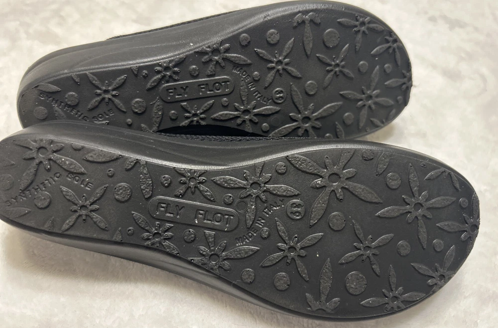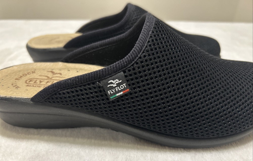 Fly Flot Anatomic 8/ 39 Black Mesh Mule Clog Shoes Slip On Comfort Wedge Italy