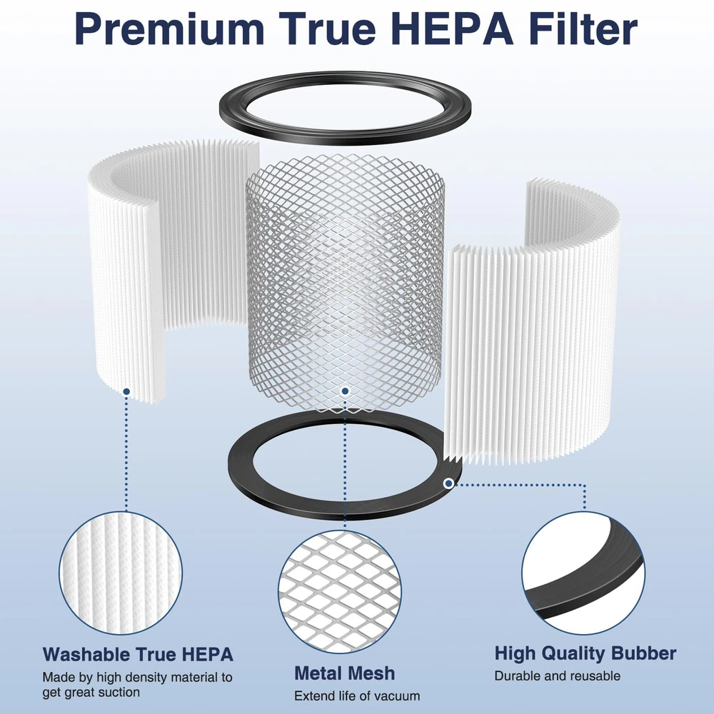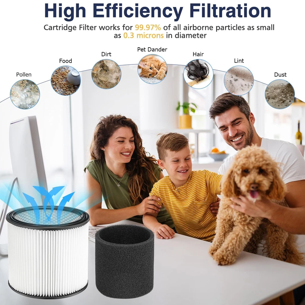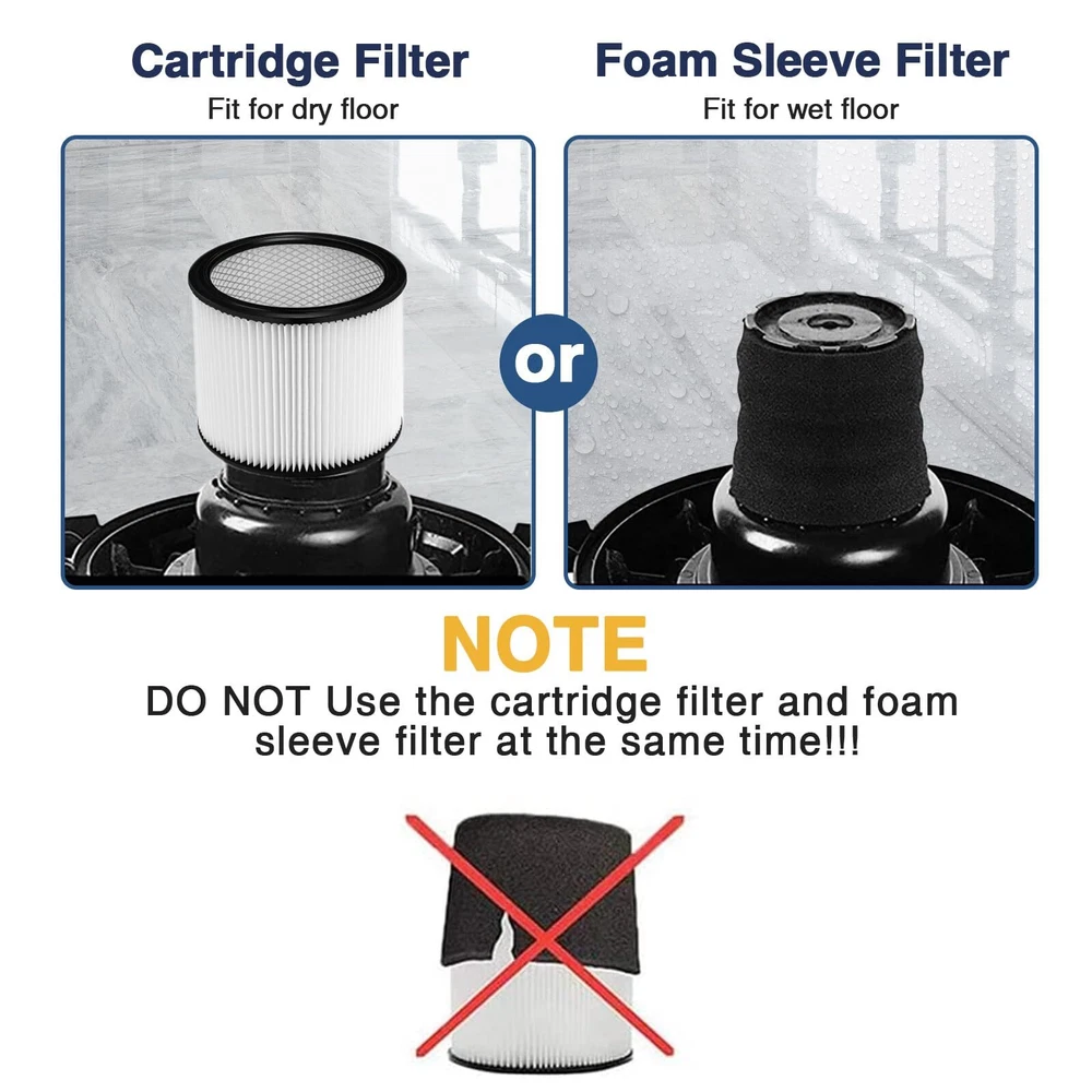 Note This is not -Vac original product and is not covered under any -Vac . The -Vac brand name and logo are the registered trademark of the respective owner. Any use of the -Vac brand name, model or part designation for this product is made solely for purposes of demonstrating compatibility. 【USE CARTRIDGE OR FOAM FILTER ALONE】 DO NOT Use the cartridge and foam sleeve filter at the same time!!! The filter and sleeve are used separately, the sleeve is not suitable for wearing on the filter. Please refer to the picture description for the installation tutorial. You can use the 90304 filter. 90304 cartridge filter fit for dry floor, 90585 foam filter fit for wet floor. Package include 2 HEPA cartridge filter and 4 Activated Carbon Foam Filter. 【PERFECT COMPATIBILITY】This 90304 cartridge filter and foam sleeve filter for 90304, 90350, 90333 Cartridge filters; Fit for -vac 5-gallon and up wet/dry vacuums SS11-450, LB650C, 4045AH, SS12-300A 800, to part No. 90304 90585. With -Vac Type U 9030400,Type X 9035000, TypeW9034000 Cartridge Filters, models BLB450, SSP16-500A, SSP16-600C, SS12-350A, SS14-450, SS16-SQ550, SS16-SQ650, 86MTSQ550. 【COMPATIBILE MODELS】90304 filter is With -Vac 90340 SL16-575A SS11-450 SS12-300A SS14-350A SS14-550A SS14-600C 16RT500A 16RTP550A 4045AH 85L450 85L575 SS16-450 SS16-550A SS16-650C 86EM350 86L500A 86M350 86MT600C 86ST450 87L500A 87L650C 87M350 87P500A 87P650C 92L550A 92L650C 92P650C BLB550 BLB560C CH87-650C LB650C MSC85EM300 MSC85L450 MSC85L500 MSC85L600C MSC85M250B MSCQPL55 MSCSS12-250 Cartridge Filter for Wet or Dry Pickup. 【PREMIUM QULAITY FILTER】The filter for 90304 vac is designed with true HEPA filter, High quality rubber and metal mesh to provide a durable and reusable filter. Work for 99.97% of all airborne particles as small as 0.3 microns in diameter, pets dander, like pets hair, cooking & smoke odors. Activated Carbon Foam Filter attach large particles to keep the air clean around you and your pets. 【WASHABLE AND REUSABLE】The 90304 filter and 90585 foam sleeve filter can replace Most Wet /Dry Vacuum Cleaners, Easy to install and replace, no tools required. 90304 filter fit for dry floor, 90585 foam filter fit for wet floor. Replace the filter every 3-6 months for optimal performance. 【】: We value and satisfaction. If you have any problems with the filter, please us through our home page, We will solve the problem for you in 24 hours.