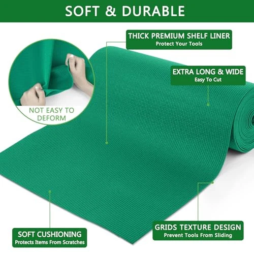 Return Policy Fast Delivery Trusted seller Foam Toolbox Liner Drawer Mat 1/8 Inch Thick X 20 Inch Wide X 24 Ft Long Green, No Slip for Protecting Cabinet, Garage, Cart, Tool Box Product Description ABSORB SOUNDING: Thanks to the soft and thick material, the toolbox drawer liner can absorb the sound of dropped tools, and they don’t make that screeching sound when opening. Well worth it for the ear and mental health. PREVENT SLIDING: Foam toolbox liner is no slip, shock-absorbing and soundproof. premium shelf liner has strong grip that can keep items in place. Not only can prevent tools from sliding and scratching but also can slow down the everyday wearing of your furniture. CUT TO FIT: Toolbox Liner Drawer Mat is easily adjustable and cut to fit any size, and you can place the liner down in your drawer or toolbox and trim off any excess material. Easy to cut and stays flat. THICK & SOFT MATERIAL: Our tool box drawer liner is featured of heavy duty thick foam material, which is soft and durable without odor. Perfect for protecting your tools and a nice covering for kitchen drawers. WIDELY USES: Toolbox liner drawer pads for protecting your tools, cabinet, garage,cart, truck,chest,tool box can be used in many places. Perfect for your drawer, cabinet, tool box, kitchen shelf , garage, or in pantry etc. Helping to keep tools organized. Shipping Returns Payment Shipping Shipping is FREE to all addresses other than APO/PO boxes in the lower 48 states. All our stock ships from US-based warehouses. Shipped via USPS or UPS (depending on location and package weight) Unless stated otherwise, all orders will ship within 24-72 hours of your payment being processed. Check our feedback to see the great reviews of FAST shipping we offer. Returns Seller does not accept returns Payment We currently accept payment via eBay managed payments only. Once payment is cleared, we will dispatch your shipment within 1-3 business days. Please refer to the "Shipping" tab for more information regarding shipping speed to your destination.