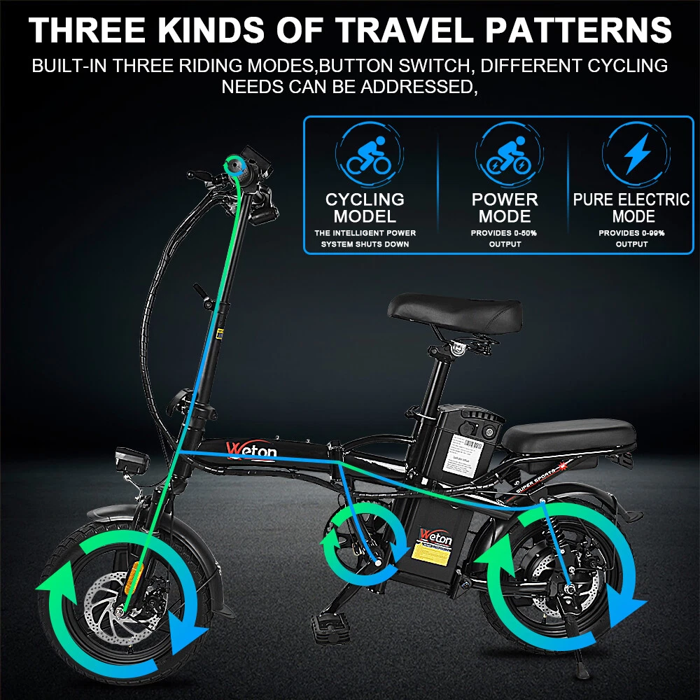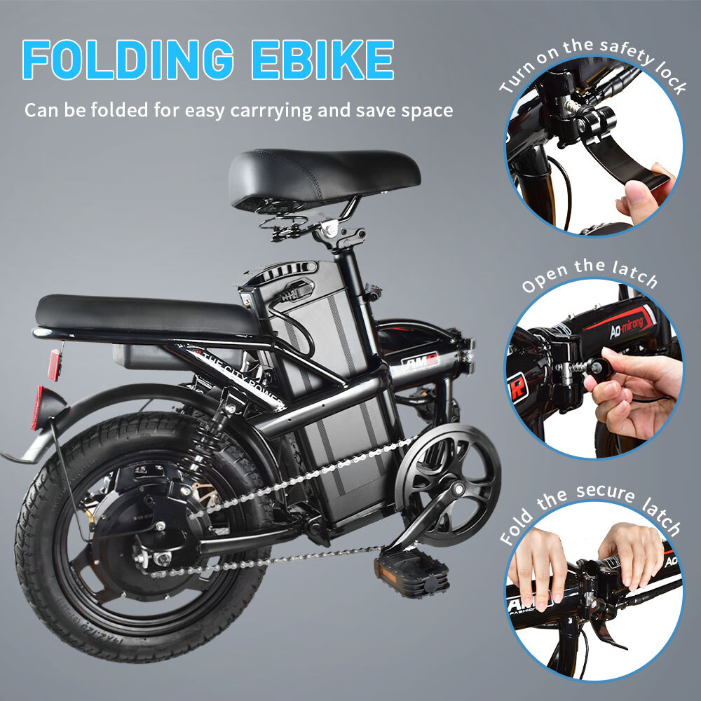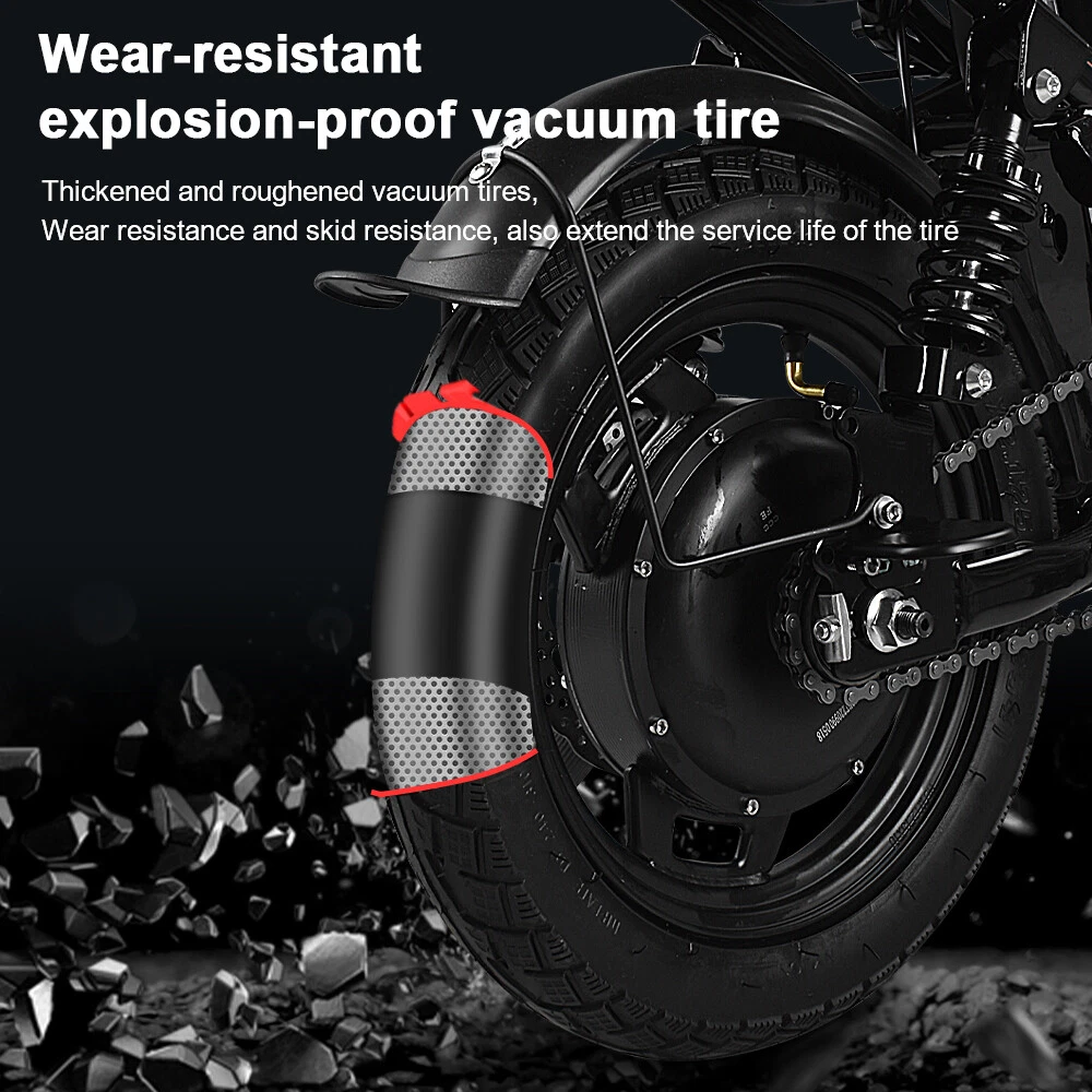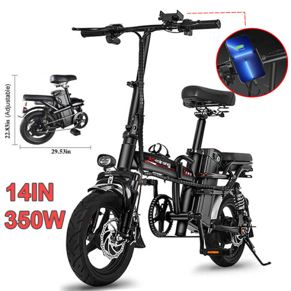 Foldable Electric Scooters 22MPH 48V 350W Urban Commuter Adult E-Bike With Seat Description Specification: Load capacity: 330 LB(150kg) Vehicle weight:55LB(25kg) Meter: LED battery display Wheels: 14 inch Flat wheels Brake: Front and rear disc brake Frame: High-strength carbon steel Battery: 48V 15Ah Lithium battery Range: 35-40 Miles Charging time: 4-5 hours Motor speed:0-22 miles per hour Pedal: Collapsible Aluminum Alloy Pedal Motor: 350W high speed brushless gear motor Degree of climbing::40° Product description Portable Design : The foldable design allows you to put it in the back of the car, elevator,office and saving space. Double Disc Brake : With front and rear disc brakes, it is more accurate and safer when braking. LED headlights and taillights : The LED headlights and taillights make it safer to ride in the dark. 14 in Air Tires : 14-inches large rubber air tires make riding more shock-absorbing and comfortable. Large-capacity Lithium Battery : With a 15 AH battery, you can expect a range of up to 30-35 miles on a single charge, perfect for long-distance commute. 350W Rear-drive Motor : With a 350W rear-drive motor, you can travel up to 30-35 miles, go up to 20 MPH, and clime a 40° slope. Comfortable Seat and cushion : Upgraded version e bikes with a thicker seat, which brings a more comfortable experience when riding on uneven roads. Features Safety The frame is built sturdy and durable.The dual disc brakes make this bike very safe and it stops with ease.Anti-slip wear resistant tire is suitable for all kinds of road such as rainy, muddy, mountain and other terrains.The LED headlight adds safety to the bike, as do the reflectors. Large-capacity Lithium Battery Powerful and long lasting battery and easy to use. 48V/15AH battery supports ride to 35-40 miles (Electric mode) under specific conditions. Smart lithium battery charger used for fast charging (4-5 hrs).The e bike is surprising lightweight if you need to commute with it. Lightweight & Foldable The ebikes folds up to transport or store it easily. It can be folded down in the back of the car,elevator,office. You will get compliments on it everywhere you go. Folding electric bicycle seat and handle bar can also be adjusted according to each person's preferences.This bike is very stylish and it’s fun for all ages. It can be used as a present for your kids.When the weather is good, he/she would go ride the bike. Free Choice of Mode You can go faster and farther in electric mode without breaking a sweat. Choose enjoyable pedal-assisted mode so the motor provides a max range of 40 miles to you. Or turn it off, then you can ride it like a traditional bike without feeling any drag or resistance. Per-assemble & After Sales Your folding electric bike would arrive 90% assembled and after one simple step of seat and pedals assembling, then you are ready to go. The foldable bike warranty period for battery, motor, controller and charger is 12 months. Natural damage or quality problems during the warranty period, we will provide you with free replacement part. What will you get 1 x 14’’ folding electric bicycle 1 x 48v 15ah lithium battery 4 x Key 2 x foot pedals 1 x manual instruction UL 2849 Certified, link to UL Certification - https://productiq.ulprospector.com/en/search Payment ◆ We accept Paypal. It's a safer, faster and free way to pay! ◆ Please pay the money within 7 days after the auction ended. ◆ Non-Paying Bidders: Serious Buyer Only! Please place bid or "Buy it now" only if you agree the price and terms of the product and no argument after the auction end. And payment must be received within 7 business days of the auction close. We will report Non-paying buyer to eBay. Delivery details ◆ Our shipping rates include the cost of shipping, handling,packaging and related manpower costs. ◆ All item will be shipped by Standard Shipping within 3 business days (excluding weekend & holiday).It takes approximately 5-7 working days.Shipping time is only estimated and not guaranteed. Please contact us if there's any problem. ◆ All items will be shipped to buyer's paypal address.Please confirm your paypal address is right.We are not responsible for wrong or undeliverable address. We reserve the right to charge the shipping fee again for returned items due to wrong address. Terms of sales ◆It is our goal to provide our customer 100% satisfaction. ◆30 Days Money Back or Return for New one Guarantee from the date of original purchase. Buyers must contact us to send the defective items back for exchange within the warranty period. ◆Our warranty does not extend to any products that are physically damaged or that are not under normal operating conditions as a result of misuse or improper installation on the buyer/user's part. ◆For all return products customers MUST contact us for the returning address. Products should be returned with original packages and must be returned in like-new condition with all accessories and packaging. ◆If the return is due to the mistakes of buyers, for example, wrong purchase, no need of the batteries after transaction, or other artificial damages,the buyer will be responsible for the postage. Contact us ◆If you have any general questions then please contact us via eBay message service only. ◆Please allow up to 24 hours for responses. You can also contact us via eBay message service for any wholesale enquiries. Please note that we are closed on Weekend. ◆ We have always been trying our best to provide the best service and reliable products for every customer. Please contact us via ebay message or email to resolve the issue before leaving negative feedback. On Jan 11, 2025 at 01:09:39 PST, seller added the following information: