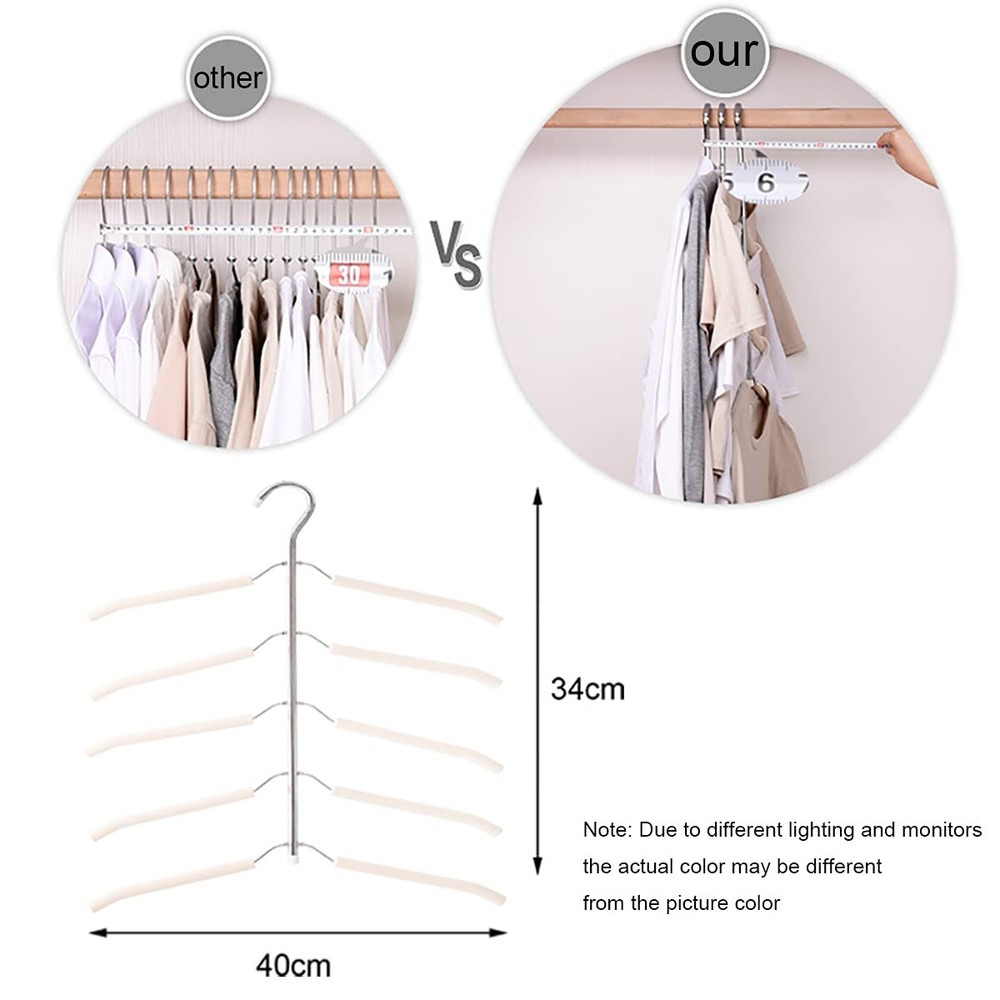 3 Pack 5 in 1 Anti Slip Clothes Hangers/Space Saver Magic Metal Hangers Color: White Quantity: 3 Material: stainless steel + EVA foam Size: 34.5cm×40cm/13.58"×15.7", hook opening 1.6 inches (4 cm) Reject cheap inferior hangers The main body of our hanger is made of stainless steel, which has strong durability and can easily bear heavy clothes such as coats, coats, sweaters, etc. The soft EVA foam makes the hanger have good slip resistance and keeps the natural shape of the clothes without wrinkles 5-layer design can save a lot of wardrobe space EVA foam may be squeezed during transportation, resulting in indentation, don’t worry, it will return to its original state after a period of time If you have any questions, please feel free to contact us, we will solve it for you within 24 hours 【Sturdy and Durable】Each hangers is made of high-quality stainless steel and soft EVA foam padded. Durable and Eco-friendly. 【Ideal Size】High 13.5in(34.5cm) * Width 15.7in(40cm). Hook opening 1.6in(4cm). Fits most wardrobes 【Save Space】Each clothes hangers feature 5 tiers foam padded arms. Can at least hold up 5 blouses, coats or shirts. Maximize to save space for your closet and keep it tidy and orderly 【Maintain Shape, Non-Slip】The soft EVA foam makes the hanger have good slip resistance, will not scratch your clothes, and maintain the natural shape of the clothes without wrinkles 【Easy To Use】Each hanger can be rotated 360 degrees, you can easily hang or take out clothes. Very suitable for coats, suits, sweaters, T-shirts, jackets, dresses, etc.