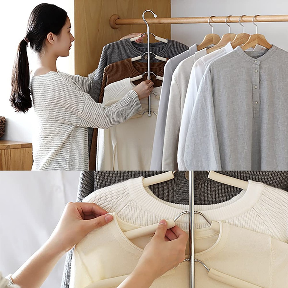 These hangers are fantastic! The sturdy stainless steel holds heavy coats and sweaters without bending, while the EVA foam padding prevents slipping and keeps clothes wrinkle-free. The 5-tier design saves so much closet space, and the quality is much better than flimsy plastic hangers. Highly recommend for organizing while protecting your clothes!