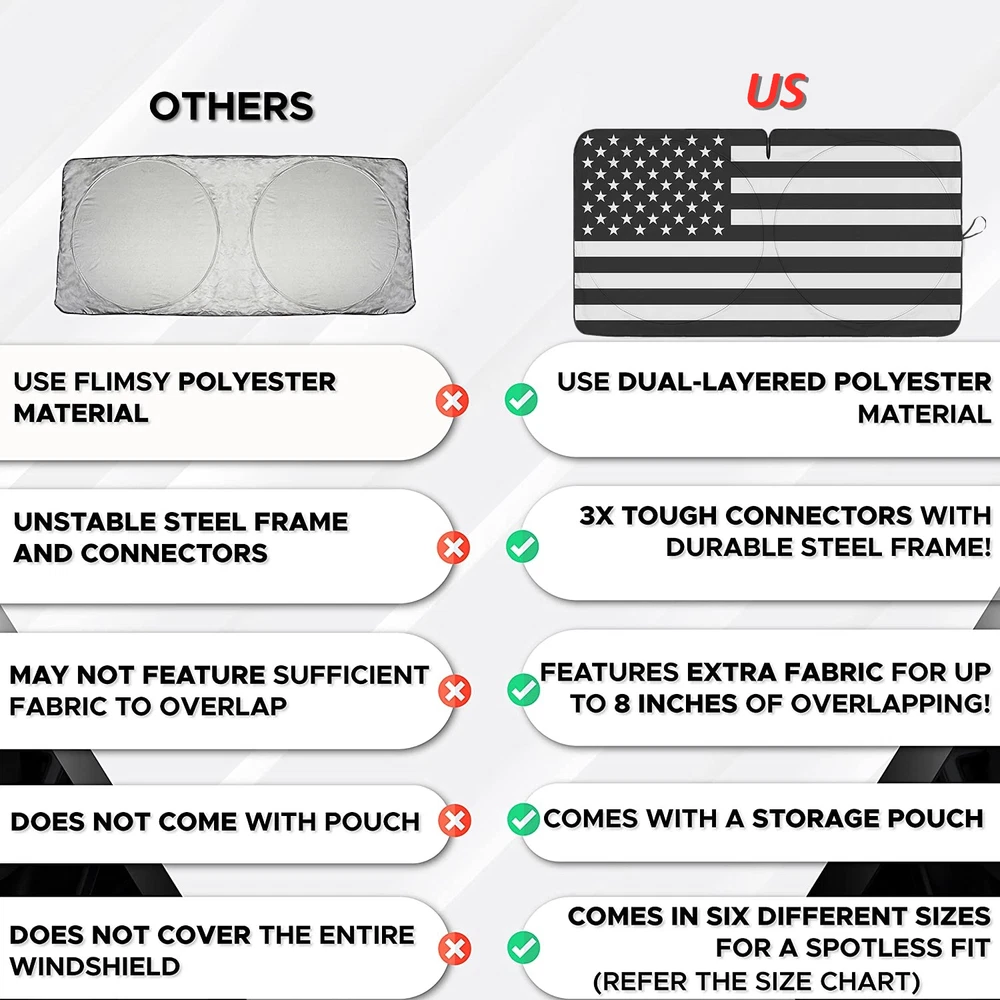 Foldable Auto Car Front Window Windshield Sun Shade Shield Cover Visor US Flag Size Recommend Big Size (160 x 86cm) : It will fit for ALL SUV ,Trucks, Vans, and Cars with windshields not exceeding 63"*34"! Fit for Audi SUV FOR AUDI Q2 Q3 Q4 Q5 Q7 Q8 FOR AUDI SQ2 SQ5 SQ8 FOR AUDI Q2 Q3 Q4 Q5 Q7 Q8 e-tron Plea se measure the size of your car front windshield for further confirm. Features American flag design - The American windshield visor combines powerful sunlight reflection and heat insulation.The unique design makes your car unique in the sun. Get rid of harmful ultraviolet radiation to your car. Protects Your Car Interiors - We know that the sun heat can be exhausting to you as well as to your car. Our Car Sun Shade for Windshield is effective against harmful UV rays from damaging your car's interior accessories. It is super durable and convenient to use. Superior Sun Protection - Our Sun Shield for Car offers outstanding automotive interior sun protection. Thanks to the high-quality, durable 240T sun blocker screen protector material, your car's interior temperature will stay at an optimum level! Perfect Size for Your Cars - This car window shade is 63INCH x34 INCH . The sunshade is for car windshield that is no larger than 63INCH x34 INCH . Our sun shade car windshield is best for smaller cars windshields. Measure before purchasing to get the best size for your car windshield. Compact Design - Our car window shade comes with a free compact travel pouch. You can fold in seconds without any suction cups or adhesives. After folding, you can take your Car sunshade in your door pocket, behind your sun visor or behind your car seat protector. Product Details Type: Windshield Sun Shade Related Parts: Windshield Attachment Method: Unfold Behind Windshield Pattern: US Flag Material: Reflective Nylon Size: 63inch x 34 inch / 160cm x 86cm Net Weight: 160g Applications/Compatibility: Adjustable fit, please measure your windshield before buying Package Included 1x Car Windshield Sun Shade 1x Storage Bag Payment We can accept payment of Paypal only. Payment should be made within 7 days after purchasing. (No payment orders eBay system will automatically open unpaid dispute, and this is not good to your account.) Shipping Item will be shipped out within 48 hours upon receipt of your cleared payment. We can not ship on Sundays and other public holidays. International Buyers Please Note: 1, Import duties, taxes and charges are not included in the item price or shipping charges. These charges are the buyer's responsibility. 2, Please check with your countrys customs office to determine what these additional costs will be prior to bidding/buying. Please make sure your address in paypal is correct. we will only follow your address listed in the Paypal payment for the shipment. Combine shipment is not allowed. If you want to combine all the items together, you should still pay for all of the shipping, insurance and handling fee! Returns We offer you 30 days return. The buyer is responsible for return shipping including a result of customer error or wrong item bought: 1) If you received an incorrect, damaged, defective, or item not as described, contact us for a partial/full refund or replacement on our cost. 2) If you want to return the item, please contact us within 60 days after package received. Return products must also be in its original condition: including box, packaging and all other accessories. Feedback 1.We are appreciated your business and to improve our customer service and our commitment to quality. 2.We will leave a positive feedback immediately after payment is received. We appreciate a positive feedback as much as you do. 3.If for some reason there is any issue with the purchase, please contact us prior to leaving feedback, and we will be glad to work with you to have it resolved. Contact Us We do appreciate your purchase from our store. If you are satisfied with the item as well as our service, please kindly leave us a Positive Feedback to help develop our business. Thank you in advance. Our office hours are MONDAY - FRIDAY 9:00PM - 18:00PM PST , we do not answer any E-mails or eBay messages on weekend. All E-mail or eBay message take us around 24 hours to respond. Thanks a lot. Foldable Auto Car Front Window Windshield Sun Shade Shield Cover Visor US Flag Size Recommend Big Size (160 x 86cm) : It will fit for ALL SUV ,Trucks, Vans, and Cars with windshields not exceeding 63"*34"! Fit for Audi SUV FOR AUDI Q2 Q3 Q4 Q5 Q7 Q8 FOR AUDI SQ2 SQ5 SQ8 FOR AUDI Q2 Q3 Q4 Q5 Q7 Q8 e-tron Plea se measure the size of your car front windshield for further confirm. Features American flag design - The American windshield visor combines powerful sunlight reflection and heat insulation.The unique design makes your car unique in the sun. Get rid of harmful ultraviolet radiation to your car. Protects Your Car Interiors - We know that the sun heat can be exhausting to you as well as to your car. Our Car Sun Shade for Windshield is effective against harmful UV rays from damaging your car's interior accessories. It is super durable and convenient to use. Superior Sun Protection - Our Sun Shield for Car offers outstanding automotive interior sun protection. Thanks to the high-quality, durable 240T sun blocker screen protector material, your car's interior temperature will stay at an optimum level! Perfect Size for Your Cars - This car window shade is 63INCH x34 INCH . The sunshade is for car windshield that is no larger than 63INCH x34 INCH . Our sun shade car windshield is best for smaller cars windshields. Measure before purchasing to get the best size for your car windshield. Compact Design - Our car window shade comes with a free compact travel pouch. You can fold in seconds without any suction cups or adhesives. After folding, you can take your Car sunshade in your door pocket, behind your sun visor or behind your car seat protector. Product Details Type: Windshield Sun Shade Related Parts: Windshield At