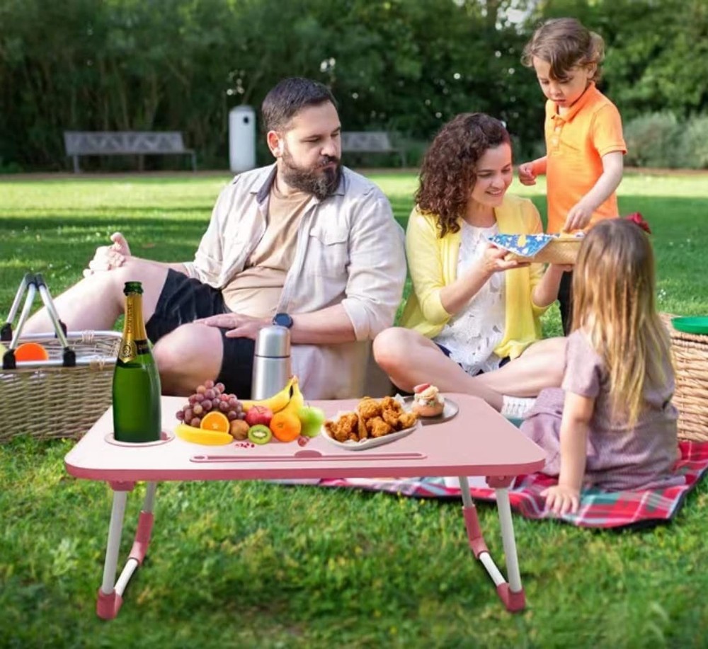 【WATCH, PLAY, STUDY - WITHOUT LEAVING THE BED! 】-Are you an avid lover of comfy bed? or now you're recovering from a past surgery, what you need most is here! It perfectly fits a small size laptop, or tablet & phone, also read or do arts and crafts while sitting on the sofa or having breakfast in bed 【SMART DESIGN】--our lap dek Wrapped table edge, User-friendly hand guard design fits your arm. The desktop card slot design makes it easy and convenient to place on mobile phones, iPad. And there has a cup slot on the desktop. You can free your hands and then enjoy the drinks safely on your bed. And Side Drawer for storing pens, cables or U disk. Can more easily enjoy your life 【WELL SELECTED MATERIAL】Made of MDF and steel which makes laptop table study and strong enough to use. Well-selected material keep it’s long service life 【MULTI FUNCTION】--The item is not only a portable laptop table, put the table on a regular table and stand up to work, this will help relieve neck and shoulder pain. but also it acts as a breakfast or snacking tray, Camping Floor, a laptop bed stand for relaxing in bed, or a book/tablet stand 【PORTABLE & CONVEVIENT】--Clever folding makes the legs stay flat and Easy to fold out and easy to carry, you could put it behind the door or the corner of home when not in use .You can easily set up a laptop or writing workstation anywhere in your home or office
