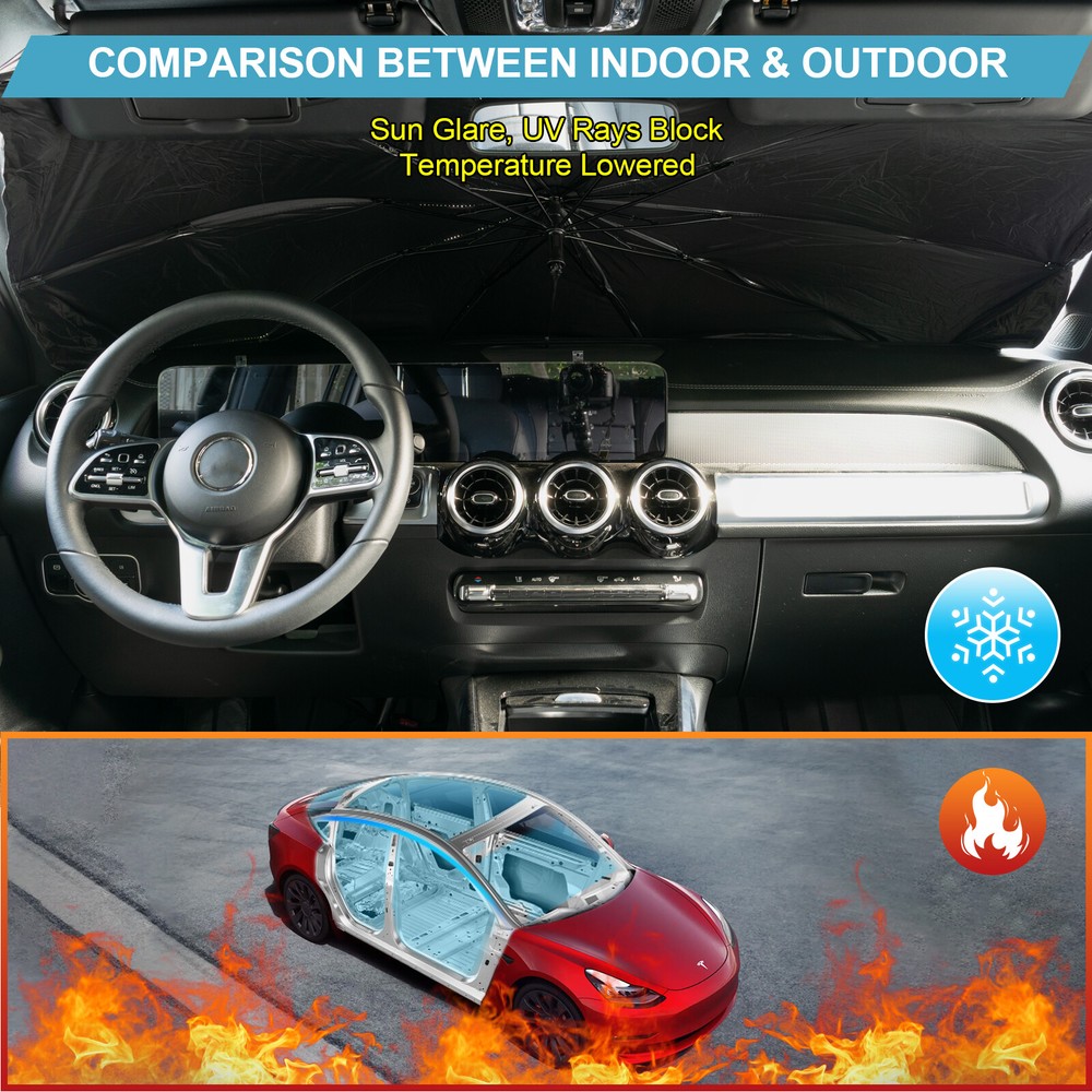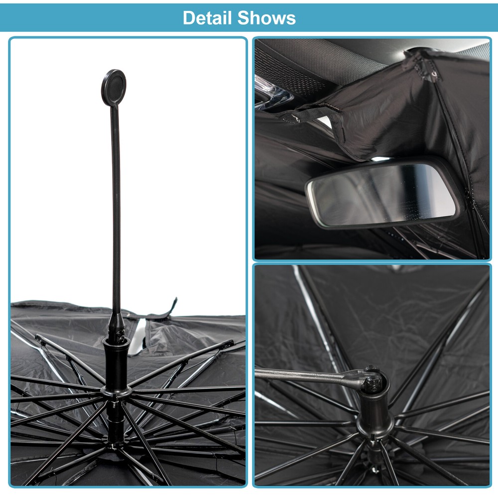 Car Windshield Sun Shade Umbrella Foldable Front Window Cover Sunshade Visor USA Item Specifications: Condition: New Color: Silver & black Material: Silver coated cloth & black steel bone Sunscreen Material: UPF50+ Compatibility: Universal Placement On Vehicle: Front windscreen/front windshield Quantity: 1 piece Size: 142X76.4cm/55.91"X30.07" Item Features: 1. High-Quality Material & Durable Design - This umbrella is made of silver coated cloth and black steel bone. These types of materials ensure the reliability and durability of this car sunshade umbrella. Its design - the silver coating and black back can efficiently protect the interior of your car from UV rays, sun glare, to lower the temperature in the car, which makes you comfortable. 2. Universal Compatibilty - This sunshade is 142x76.4cm, or approximately 55.91x30.07 inches (length x width). The large size makes it suitable for most of cars, vans, sedens, trucks, etc whose sizes of windshields or windscreens are approx. equal to that of umbrella. Thus, please confirm the size before you place the order. 3. Certain Upgraded Designs For The Umbrella - First, a slot is designed on the upper side of the umbrella . With this slot, it can perfectly fit for the windshields or windscreens with rear view mirrors. Second, the unique idea - 360 degrees rotatable and bendable umbrella knob - is taken . The umbrella knobs of most of car sun umbrellas can't be rotated at 360 degrees and bendable. However, the umbrella knob of our car sun umbrella is made from soft plastic and can be 360 degrees rotatable and bendable, which better protect your car center console and dashboard from being scratched. 4. Easy To Use & Store - The car sun umbrella is easy to install. You just need to take it out of the storage bag, and open it, and finally put it on the inner side of your car windscreen, that's it. And there is a storage bag that is made of PU-leather along with the umbrella. When you don't want to use it, you can put it into the bag, and then place it into the armrest box and other places where the umbrella can be stored or hang it up on the wall or the bracket, which is quite convenient. Item Included: 1x car sun umbrella 1x storage bag We accept Paypal and majoy credit cards payment When you place an order, please choose a shipping method and pay for the order including the shipping fee within 48 hours. And please make sure your current address correct after your payment within 1-2 days! About Shipping 1. Receiving time = Processing time + Shipping time 2. Processing Time: Around 1-3 Days 3. Shipping Time: 15-26 Days By Air Mail 3-10 Working Days By Express We do not guarantee delivery time on all international shipments due to differences in customs clearing times in individual countries, which may affect how quickly your product is inspected! Important Notice >Transit Time Is Best Estimated But NOT Guaranteed As Transit Time Varies >Orders may be subject to import taxes, customs duties and fees levied by the destination country.Additional charges for customs clearance must be fulfilled by the recipient; We no control over these charges, nor can we predict what they may be. 100% Customer Satisfaction Is Our Top Priority For Any Reasons You Are Not Satisfied With The Products Within 30 Days Of Purchase, Return Or Exchange Can Be Issued, Customers Are Responsible For The Return Shipping Cost And Subsequent Replacement Shipping Cost For An Exchange Item. Replacement Item Will Be Processed And Shipped Upon Return And Inspection Of The Original Item. Return Items Must Be In Their Original Packaging And Unused Condition, Or They Will Be Rejected And Sent Back To You. Due To The Nature Of The Products We Sell, We Carefully Inspect All Packages Prior To Shipping. All Of Our Products Are Sold As Brand New, All Damaged Products Are Considered Damaged During Transit. If You Received A Damaged Or Broken Item, Please Save All Packaging Material And Paperwork And Contact Us Immediately So We Can Help You With The Damage Claim With The Shipping Carrier. No Claims Will Be Honored After 14 Days Upon Item Receive. Digital Photos Will Be Required For All Cases. All Products Come With A 60 Days Limited Warranty Against Manufacturer’s Defects. No Exchange Will Be Issued On Products That Have Been Damaged In Any Way. Warranty Does Not Applied To Improper Installation, Water / Fire Damage, Modification, Or Any Acts Of Nature . If you have any question or concern, please feel free to contact us via eBay massage directly, we will get back to you as soon as we are available ATTENTION : We do not answer any emails over the weekend Please send message to us.We will reply your message in 24 hours, Our working time: 9:00 AM-22:30 PM (GMT+ 08:00 Beijing) 1:00 AM -14:30 PM (GMT+ 00:00 London) 19:00 PM-08:30 AM (GMT- 06:00 USA/Canada) Why Choose us? 1. A tremendous variety of products-- With over 200,000 items in stock, we are one of the world's largest online stores in automotive aftermarket product sector. You'll have more choices than what you can ever imagine. What's more, we're updating with over 100 new arrivals per month! 2. Affordable prices -- we are offering the latest car parts and accessories for almost 20 years, we're always keeping up with the newest trends, while most importantly, making the prices as low as we can. 3. Free worldwide shipping -- Yep, you won't believe that you'll enjoy free worldwide shipping with us (unless stated otherwise),it's not a joke,but an absolute truth. 4. No-question refund and return-- Anything wrong issuing quality and breakage can be returned or refundable. Item Specifications: Condition: New Color: Silver & black Material: Silver coated cloth & black steel bone Sunscreen Material: UPF50+ Compatibility: Universal Placement On Vehicle: Front windscreen/front windshield Quantity: 1 piece Size: 142X76.4cm/55.91"X30.07" Item Features: 1. High-Quality Material & Durable Design - This umbrella is made of silver coated cloth and black