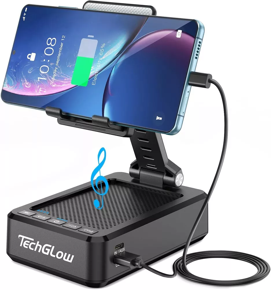 Free eBay listing template designed by dewiso.com TechGlow Gifts for Men Women Foldable Cellphone Stand with Bluetooth Speaker and Power Bank Birthday Gift Idea for Mom Dad Cool Gadget Tech Gifts FREE AND FAST SHIPPING! About this item 【3 in 1 Multifunctional Gadget】Bluetooth Speaker + Phone Stand +Power Bank.This versatile device combines wireless Bluetooth speaker, portable charger and phone holder into a perfect tech gadget. It brings a lot of convenience for watching videos and making hands-free phone calls. It delivers stunning sound with enhanced bass, tight mids, and crystal clear highs without distortion at any volume. 【Foldable, Height and Angle Adjustable】The phone speaker stand can be adjusted to suit different viewing angles, you can choose the most comfortable posture to watch videos. The phone speaker stand for desk is a very useful gadget when you take cooking lessons, makeup lessons and other DIY lessons. You can easily follow them step by step without holding the phone, hands free. 【Power Bank】Charge your smartphone or tablet while watching videos or playing music with this 5000mAh Bluetooth speaker power bank. No need to worry about your phone battery running out in the middle of having fun. It is also portable and easy to carry around. 【Works for smartphones and tablets 4-13"】TechGlow phone stand speaker works with most 4-13" smartphones, tablets and e-readers with Bluetooth function. It can also be used as laptop or computer outer speaker with AUX connection. 【Extra Long Battery Life】Playing up to 50 hours on a single charge at 50% volume, about 1000 3-min songs. Play the wireless Bluetooth speaker day and night for long-lasting fun. 【Ideal Gift Ideas】The Bluetooth speaker is a thoughtful gift for anyone for any occasion. Every year, there are various anniversaries between lovers. This is a gift suitable for both women and men. For Valentine's Day or anniversaries, gift for him or her. Also a suitable gift for your friends, mother, father, teachers and children on Birthday, Graduation, Retirement, Mother's Day, Father's Day, Teacher's Day, Thanksgiving, Christmas, New Year. › Product We offer a 30-Day Return Policy on items which you are not completely satisfied with. You have the option for a full-refund or an exchange of the item. No returns are available on items shipped outside of the US . Shipping We offer Free Shipping to the US and ship within 2 business days of payment, usually sooner. We use UPS express shipping. That's why your products are usually delivered within 3 days . Contact We try our very best to make sure every customer is completely satisfied. If there's a problem , message us! We're happy to help. 24/7 live chat available.