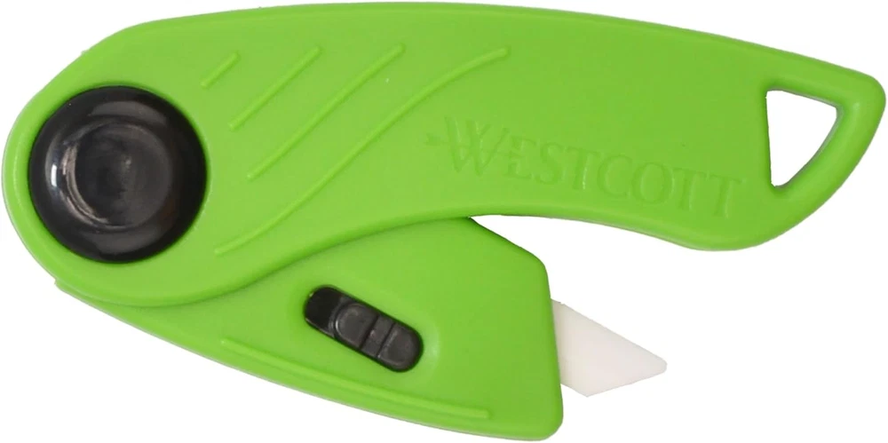 Foldable plastic body, strong, lightweight and easy to store Westcott SafeEdge ceramic blades are safer and longer lasting than traditional steel blades HIGH IMPACT DURABILITY - ABS frame for high impact durability Rounded tip for safety Reversible blade doubles its lifespan and is safer than traditional blades Uses ceramic blades (00648) Westcott’s ceramic utility cutters offer a safer alternative to steel blade box openers. The ceramic blade will stay sharper longer than traditional blades. These are a great addition to the home, office, or garage. They allow you to easily break down boxes with handling safety in mind.
