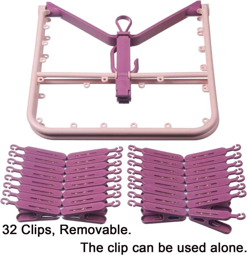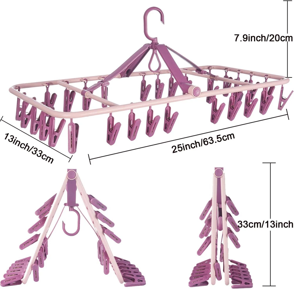 ???? If you have any problems with the goods you receive, please contact the seller for support in time, and we will handle them to you in time. ???? Large items are easy to be damaged during transportation. If the product received is bad, please contact the seller for support and will refund or replace it. Thank you. ???????PERFECT DESIGN???Detachable clips, clips can be used alone.Designed with a convenient 360?? rotatable neck and smooth swivel hook, this hanger for socks can be rotated to any angle you want and it is easy to dry laundry from all directions. Hanger clips are perfectly spaced to efficiently maximize air flow. ???????SPACE SAVING???Our laundry underwear hanger hang up to 32 small items in compact space for multipurpose drying or storage. ???????MATERIALS???Drying hanger for socks made of high quality plastic and long lasting spring, it is extremely sturdy and durable. The 32 pieces of high stretch clips hold items tightly. Plastic clips with fine-grained, non-slip teeth but will not leave marks on your beautiful clothes. ???????32 Clips???-USING FOR DISPLAY-By using these you may create an interesting display in your place. Great for party, crafts, gifts or cards, baby room displays.etc.These durable clips with basket are good choice for your daily necessary. ???????MULTIPURPOSE???Our hanger with drying clips is designed for both hand washing and machine washing items, fits in hanging towels, underwear, scarves, panties, bras, shirts, ties, hats, socks, masks, handkerchief or other clothes. Easy to hang it on closets, shower curtain rod, laundry room, outside clothesline etc. The foldable drying hanger with clips is lightweight and easy to carry.