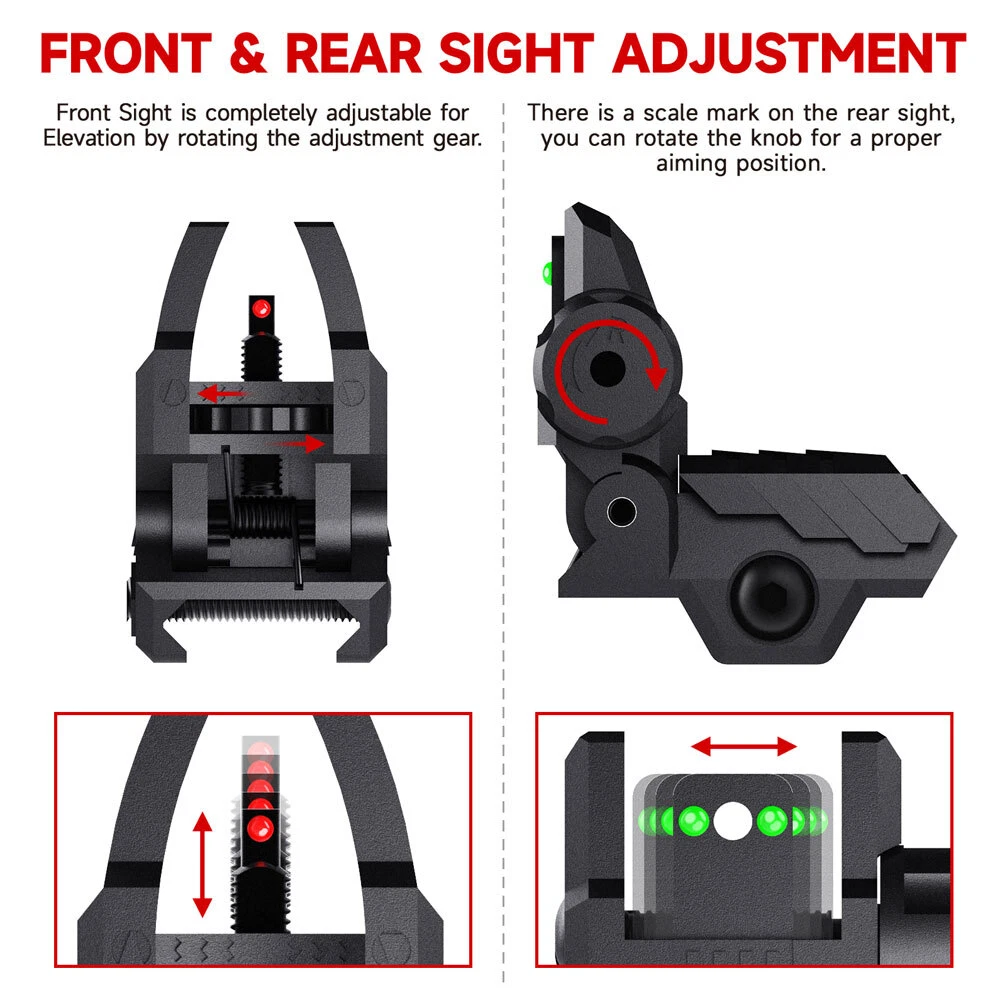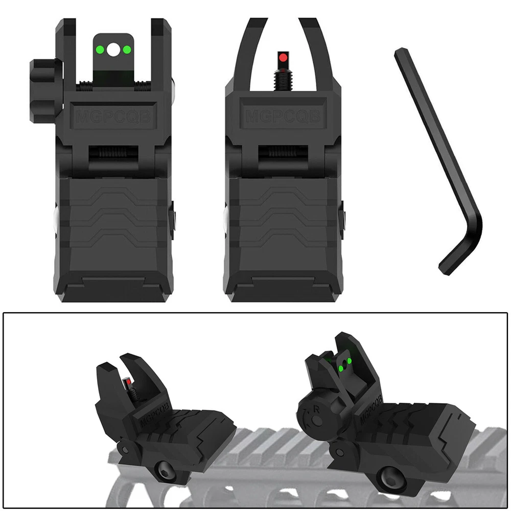 Foldable Flip-Up Iron Sights with Fiber Optics for Dual Aiming Precision