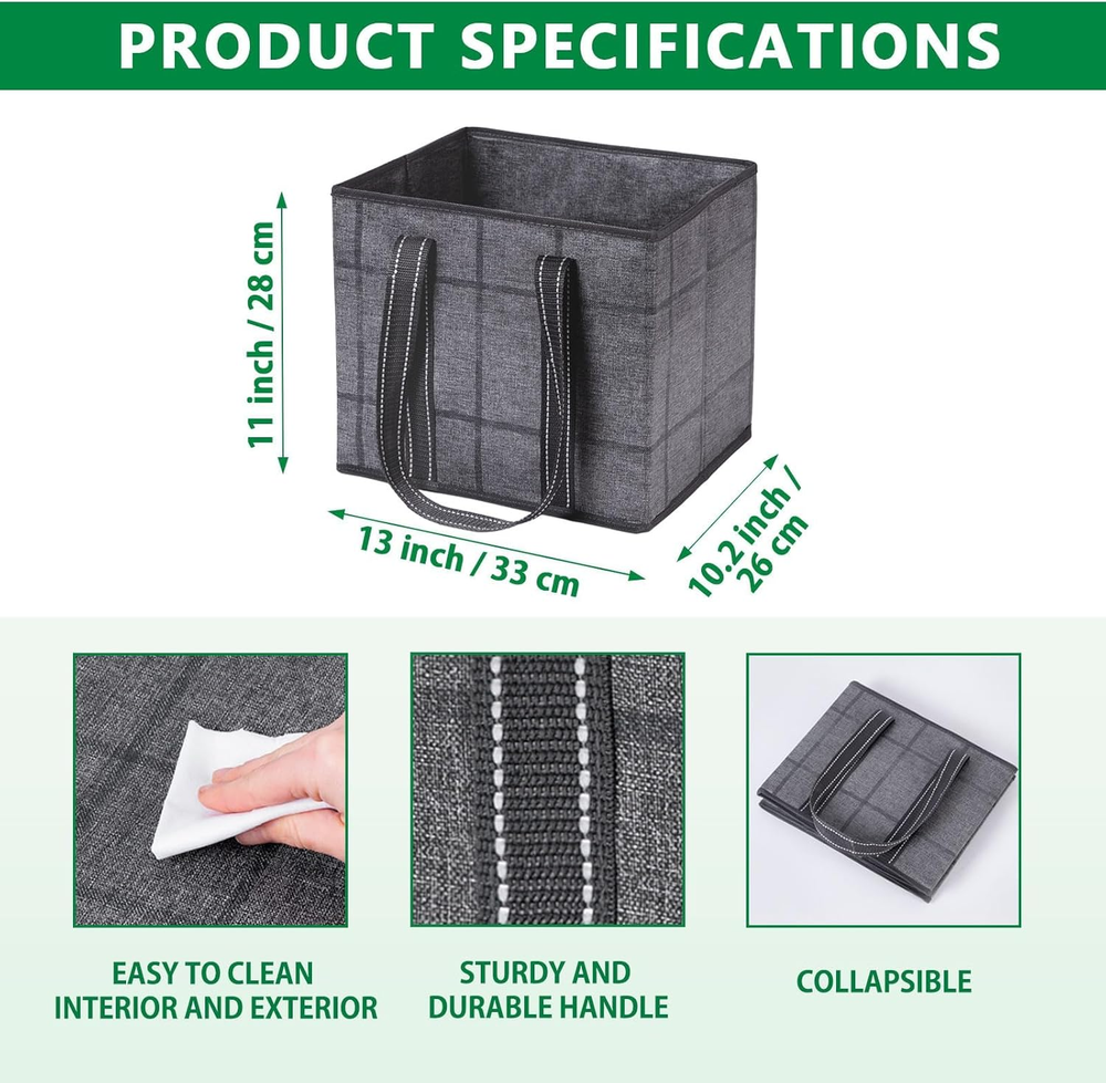 Stands Upright & Stays Open with Hard Bottom – Avoid worrying about your floppy grocery shopping bag falling over in the trunk or struggling to keep it open. Shop easily with a sturdy box-shaped bag by VENO which contains a hard bottom and prevents your bags or groceries from falling over, rolling around, or getting smashed in your car trunk, shopping cart, or at checkout. Reach in whenever you need, easily and quickly load and unload, and keep items put with its amazing standing ability. Organize As You Shop – Shop easier by placing 3 bags in your shopping cart and organize purchases as you go. Separate your delicate bread or eggs and fresh fruits and veggies from your frozen meats and heavy drinks. Take advantage of the versatility and place them in your car trunk as organizers for miscellaneous items or use as laundry baskets, storage bins, utility bags, food delivery bags, or even Christmas gifts! Dimensions - 13” W x 11” H x 10” D. Spill-Proof & Easy to Clean – You don’t have to be concerned about getting your grocery bag dirty or stained with our water-resistant and durable 220 GSM PP-woven material which is extremely easy to maintain. Simply use a sanitizing wipe or damp cloth to clean both the interior and exterior and follow by air-drying. Take and use our large bag to transport goodies for outdoor activities and some fun in the sun at the beach, picnic, or camping trip! Rigid & Sturdy Structure – Don’t worry about your bag ripping from bulky items or sharp objects. Enjoy hassle-free shopping with our heavy-duty and reusable grocery tote bag which contains rigid hardboard sides for puncture-resistance and maintaining its sturdy box structure. Carry by the long and strong poly webbing handles sewn to the bottom webbing edges for maximum durability. Hold up to 40 pounds with uncompromised quality designed to hold plenty, but not be overloaded at checkout! Collapsible For Easy Storage – Collapse and fold flat into a small size to save space and store compactly in your car trunk, back seat pocket, kitchen drawer, or cabinet. You don’t have to worry about VENO bags taking up and crowding space. Eliminate the need for disposable plastic bags with stylish, reusable, and sustainable bags by VENO. Product Description Choose sustainable shopping with VENO reusable grocery bags! Great Alternative to Disposable Bags: Go Green With VENO! With a set of 3 VENO bags, you can replace 15 disposable bags each trip, significantly reducing plastic waste. Stable Design for Effortless Loading Hardboard Bottom and Sides The removable hard bottom panel and rigid hardboard structure maintain the bag's shape, providing stability and keeping items organized and secure when filled. This sturdy design enables the bag to stand upright, even when empty, making loading and unloading much more efficient. Durable and Spacious Alternative Great Alternative to Disposable Bags! VENO offers an impressive capacity, making them an excellent alternative to plastic bags. A single 3-pack of our bags can replace up to 15 plastic bags, reducing waste. Designed for durability and convenience, these bags are perfect for all your shopping needs, helping you go green effortlessly. Water-resistant and easy to clean Water-resistant material allows for easy cleaning, great for relaxed days at the beach! A Bag for Every Lifestyle! Multi-Use Reusable Bags: Infinite Possibilities These reusable bags are ideal for carrying groceries, organizing home essentials, car trunk organization, and enjoying outdoor activities. Versatile and sustainable, simplifying your life while aiding the environment. VENO Products Add to Cart Add to Cart Add to Cart Add to Cart Add to Cart Add to Cart Customer Reviews 4.8 out of 5 stars 3,962 4.8 out of 5 stars 3,962 4.8 out of 5 stars 3,962 4.7 out of 5 stars 1,972 4.7 out of 5 stars 6,433 4.6 out of 5 stars 340 Price $22.99 $ 22 . 99 $21.99 $ 21 . 99 $21.99 $ 21 . 99 $21.99 $ 21 . 99 $21.99 $ 21 . 99 $22.99 $ 22 . 99 Size (Inches) 13W x 11H x 10D 16W x 12H x 10D 13W x 11H x 10D 15.8W x 13H x 8.7D 15W x 14H x 10D 15W x 14H x 10D Safely Hold 40 lbs 40 lbs 33 lbs 50 lbs 45 lbs 45 lbs Capacity 6 Gallons/23 Liters 8.3 Gallons/31.4 Liters 6 Gallons/23 Liters 7.8 Gallons/29 Liters 8.8 Gallons/33 Liters 8.8 Gallons/33 Liters Collapsible ✔ ✔ ✔ ✔ ✔ ✔ Hard Bottom ✔ ✔ ✔ ✔ ✔ ✔ Cardboard Inserted Sides ✔ ✔ ✔ ✘ ✘ ✘ Insulation ✘ ✘ ✘ ✔ ✘ ✘ Extra Side Handles ✘ ✔ ✘ ✘ ✘ ✘ Material PP-Woven(heavy duty and stiff) PP-Woven(heavy duty and stiff) Non-Woven (flexible and soft) PP-Woven(heavy duty and stiff) PP-Woven(heavy duty and stiff) PP-Woven(heavy duty and stiff) Best For Shopping, Organizer, Picnic Shopping, Organizer, Picnic Shopping, Organizer, Picnic Shopping, Food Delivery,Picnic Grocery, Beach, Office, School Grocery, Beach, Office, School