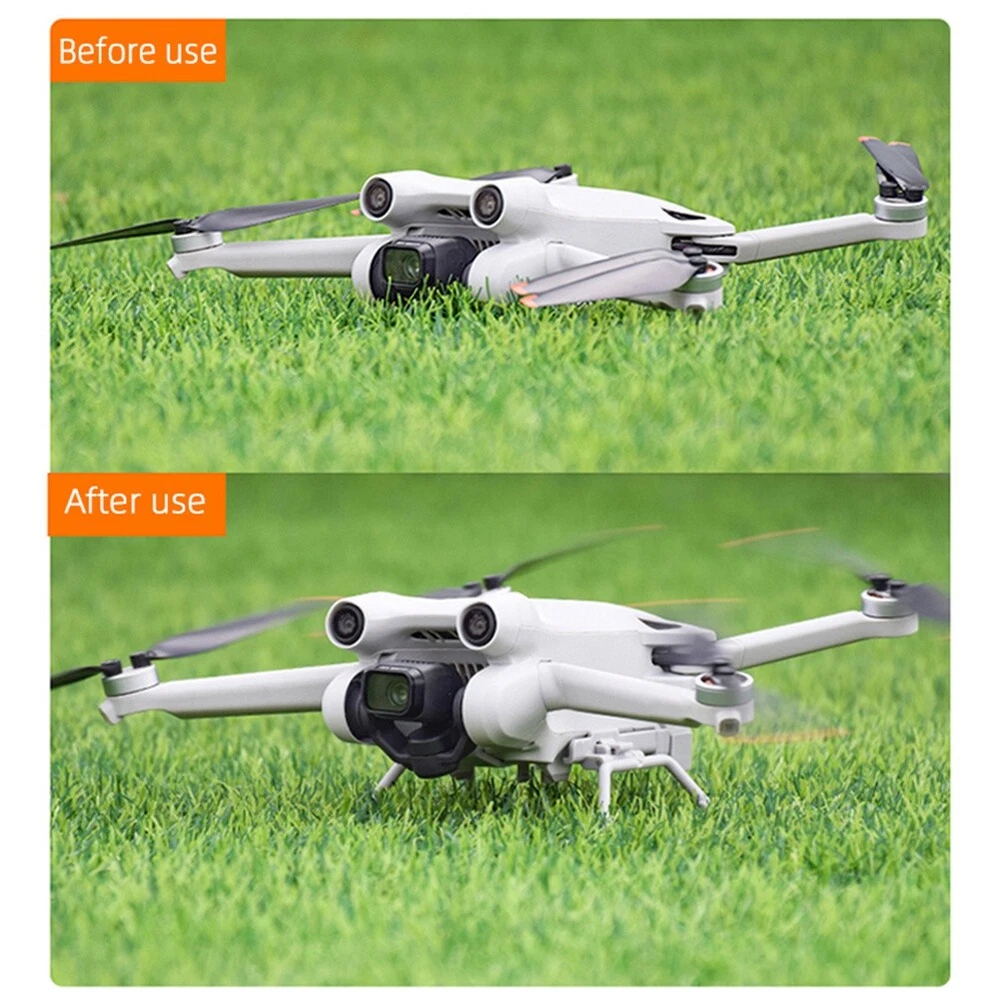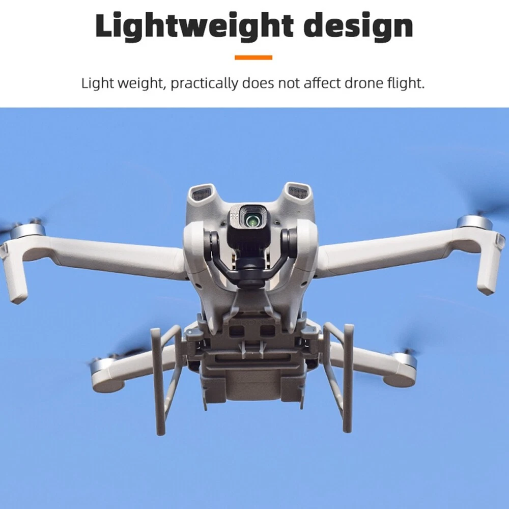 Foldable Landing Gear Release Height Extended Leg Protector for 3 / 3 Pro4253 1. The sled-like design increases the landing area of the landing gear, and the landing structure is firm and stable, 2. Raise the aircraft to 21mm to avoid the sundries on the bottom of the aircraft from contaminating the fuselage or damaging the gimbal when taking off and landing the aircraft, 3. Light weight does not affect flight, foldable tripod, portable storage, easy travel, 4. Embedded quick release design, firmly lock the body, easy installation and disassembly. Applicable models: for Mini 3 /Mini 3 Pro Material: ABS Color: Grey Package Contents: 1 x Landing Gear