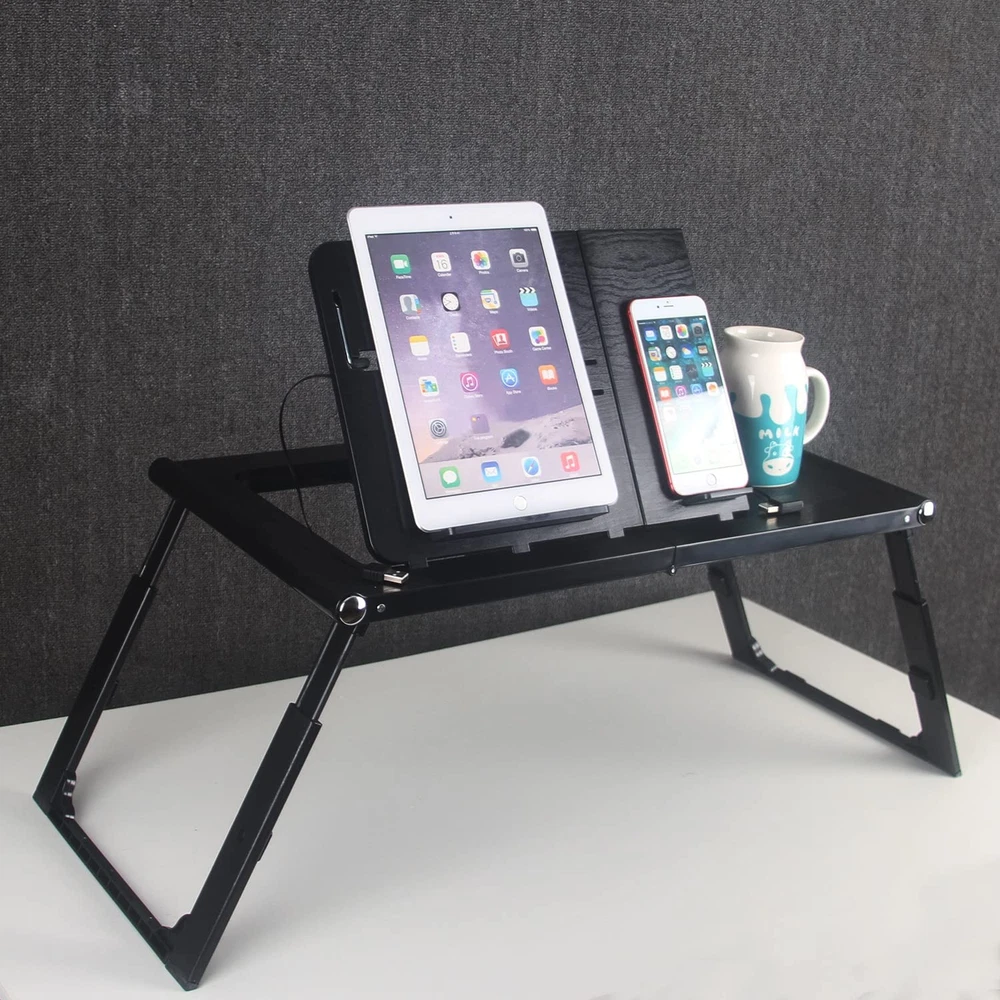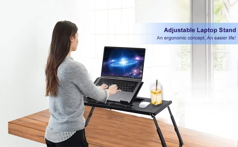 【Ergonomic Laptop Bed Tray Table 10 Levels Adjustable】 Why Choosing Our Laptop Desk? 【Ergonomic Design 10 Levels Adjustable Laptop Bed Table】 Lap-desk with 10 angle settings available,will hold your notebook,keyboard or tablet at an ergonomic angle design, which adjust to suit the best visual and prevent eyestrain and even eliminate hand fatigue. Bring you comfort and operational experience,and the baffles prevents laptops from sliding off. 3【Steady And Durable】 laptop table is made of MDF,safe and environmentally friendly. Curved desktop edge,so you can feel comfortable when using. The surface is smooth, non-toxic, moisture-proof, scratch-resistant,high-temperature resistant. 4【Anti-slip】 The feet of the Lap-desk are covered with plastic non-slip sleeve for good anti-slip effect. 5【Fit Laptops Up to 17Inches】 The size of laptop desk is :21.7’x12.6’x9.9 ,17 inch laptop is a piece a cake. Enough room for you to place large size laptop or books when you struggles in the homework. 6【Multi Function Lap Desk】 The item is not only a portable laptop table, put the table on a regular table and stand up to work, this will help relieve neck and shoulder pain. The notebook desk also acts as a breakfast or snacking tray,Camping Floor,a laptop bed stand for relaxing in bed,or a book/tablet stand. 7【12 MONTHS QUALITY WARRANTY & MONEY-BACK GUARANTEE】 Satisfied Service with 60 Day MONEY-BACK Guarantee and provide the 12 MONTHS QUALITY WARRANTY to our customers. Please contact us if you have any question during using and we will solve your problem until you are 100% satisfied! ✅【10 Adjustable Angles+2 Adjustable Heights】laptop bed desk with 10 angles setting and 2 Adjustable Heights,you can adjust the height and angle the way you like.✅【Friendly Design:tablet Clamp and Baffles】During the epidemic,you can use the bed tray for books or laptop,the tablet Clamp and Baffles pevent your laptop or book from sliding off.It can ease your eyesight and neck problem.Great for proper back and neck positioning, no more hunching over all day! ✅【Great Heat Dissipation】The Adjustable Lap desk with 2 Built-in USB Cooling Fans, Simply plug the fan into your laptop USB port,helps to cool your laptop CPU and extends its sustainable working time,perfect for your longtime using on the laptop. It's effective and quiet. This is a pleasant upgrade design, which has been praised by many customers.✅【No assembly required】 Just open it and just Insert the L-bolt into the Fixing Hole to make the desk more Stable. ✅【Large Bed Tray,Fit Laptops Up to 17Inches】 laptop desk size:21.7’x12.6’x9.9’,17 inch laptop is a piece a cake.Enough room for you to place large size laptop or books when you struggles in the homework.✅【Multi Function Lap Desk】It's not only a portable laptop table,put the table on a regular table and stand up to work,this will help relieve neck and shoulder pain,but also it acts as a breakfast or snacking tray,Camping Floor, a laptop bed stand for relaxing in bed,or a book stand. ✅【Steady And Durable】laptop table is made of MDF,safe and environmentally friendly.Curved desktop edge,so you can feel comfortable when using.The surface is smooth, non-toxic, moisture-proof, scratch-resistant.【Anti-slip】The feet of the Lap-desk are covered with plastic non-slip sleeve for good anti-slip effect. ✅【12 MONTHS QUALITY WARRANTY & MONEY-BACK GUARANTEE】Satisfied Service with 60 Day MONEY-BACK Guarantee and provide the 12 MONTHS QUALITY WARRANTY to our customers.Please contact us if you have any question during using and we will solve your problem until you are 100% satisfied!