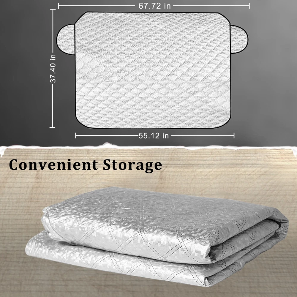 Features: -Available In All Seasons: Prevent dust and frost in spring, sun protection in summer, keep fallen leaves away in autumn, anti-snow and ice in winter. -Easy To Secure: Our car windshield cover side panels that fit inside your closed car doors to securely keep it in place. -Convenient storage:The Sun Shade can be easily folded for storage in your trunk or in rear seats Specification: · Size : 55*37inch · Color:Silver Package Included : · 1 x Car Windshield Sun Shade Note There is 2-3% difference according to manual measurement. please check the measurement chart carefully before you buy the item. 1 inch = 2.54 cm