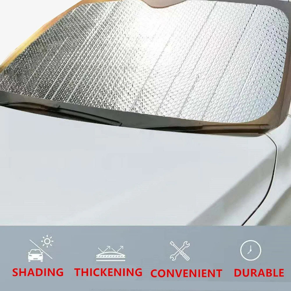 Experience the practicality and convenience of our Foldable Large Sun Shade, designed to fit seamlessly in your truck, van, or car windshield. Ideal for those who are serious about maintaining a cool and comfortable driving environment, this sunshade effectively blocks harmful UV rays and premature wear on your vehicle's interior. Crafted for durability and ease of use, the sunshade's smart design allows for quick deployment and storage. Its universal fit ensures it works with a wide variety of vehicles, making it an essential accessory for any driver looking to enjoy a stress-free ride under any weather condition.