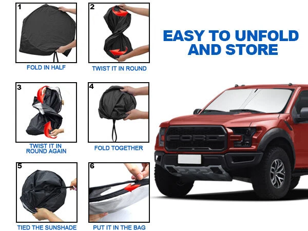 Front Windshield Sun Visor Shade Foldable UV Block Cover For Ford F-150 2009-14 Fitment For Ford F-150 2009-2014 Features Custom Fit : Windshield Shade Cover custom fit for Ford F150 2009-2014, Full covered your windshield,No Gap,Perfect fit. Double Thickness Material : Made of 210T Reflective Polyester, Sun Blocker is consist of both double reflective layers and double thermal insulating layers which can make shading and insulation more effective,Keeps your vehicle cool and protects against damage caused by hot sunlight. Air Condition Works Faster & Easier : Using less energy and gas instead of having to wait 15 minutes for your AC to cool off your car, the AC cools faster & easier. Saves your money while making your drive much more comfortable and enjoyable. Great Protection : With windscreen sun shade,it can protect car interior from harmful UV rays and heat that will fade dash and seats.Also when you travel by car or need a nap,our Custom fit Windshield Shades can block 99% sun shine and UV rays,give you and your family more protection. Easy to install & store : The foldable built-in elastic ring design allows you to prop the sunshade up in seconds with ease and fold-away storage making it convenient for daily use. Without falling off.Easy to twist, fold and store in the storage pouch. Specifications Product Name: Car sunshade Suitable for: Front Rear Windshield Material: Reflective Silver-Coated Nylon with foldable metal frame Color: Black + Silver Tone Net Weight: 180g Package Included 1 X Car Front Windshield Sunshade 1 X Sunshade Storage bag Payment We can accept payment of Paypal only. Payment should be made within 7 days after purchasing. (No payment orders eBay system will automatically open unpaid dispute, and this is not good to your account.) Shipping Item will be shipped out within 48 hours upon receipt of your cleared payment. We can not ship on Sundays and other public holidays. International Buyers Please Note: 1, Import duties, taxes and charges are not included in the item price or shipping charges. These charges are the buyer's responsibility. 2, Please check with your countrys customs office to determine what these additional costs will be prior to bidding/buying. Please make sure your address in paypal is correct. we will only follow your address listed in the Paypal payment for the shipment. Combine shipment is not allowed. If you want to combine all the items together, you should still pay for all of the shipping, insurance and handling fee! Returns We offer you 30 days return. The buyer is responsible for return shipping including a result of customer error or wrong item bought: 1) If you received an incorrect, damaged, defective, or item not as described, contact us for a partial/full refund or replacement on our cost. 2) If you want to return the item, please contact us within 60 days after package received. Return products must also be in its original condition: including box, packaging and all other accessories. Feedback 1.We are appreciated your business and to improve our customer service and our commitment to quality. 2.We will leave a positive feedback immediately after payment is received. We appreciate a positive feedback as much as you do. 3.If for some reason there is any issue with the purchase, please contact us prior to leaving feedback, and we will be glad to work with you to have it resolved. Contact Us We do appreciate your purchase from our store. If you are satisfied with the item as well as our service, please kindly leave us a Positive Feedback to help develop our business. Thank you in advance. Our office hours are MONDAY - FRIDAY 9:00PM - 18:00PM PST , we do not answer any E-mails or eBay messages on weekend. All E-mail or eBay message take us around 24 hours to respond. Thanks a lot. Front Windshield Sun Visor Shade Foldable UV Block Cover For Ford F-150 2009-14 Fitment For Ford F-150 2009-2014 Features Custom Fit : Windshield Shade Cover custom fit for Ford F150 2009-2014, Full covered your windshield,No Gap,Perfect fit. Double Thickness Material : Made of 210T Reflective Polyester, Sun Blocker is consist of both double reflective layers and double thermal insulating layers which can make shading and insulation more effective,Keeps your vehicle cool and protects against damage caused by hot sunlight. Air Condition Works Faster & Easier : Using less energy and gas instead of having to wait 15 minutes for your AC to cool off your car, the AC cools faster & easier. Saves your money while making your drive much more comfortable and enjoyable. Great Protection : With windscreen sun shade,it can protect car interior from harmful UV rays and heat that will fade dash and seats.Also when you travel by car or need a nap,our Custom fit Windshield Shades can block 99% sun shine and UV rays,give you and your family more protection. Easy to install & store : The foldable built-in elastic ring design allows you to prop the sunshade up in seconds with ease and fold-away storage making it convenient for daily use. Without falling off.Easy to twist, fold and store in the storage pouch. Specifications Product Name: Car sunshade Suitable for: Front Rear Windshield Material: Reflective Silver-Coated Nylon with foldable metal frame Color: Black + Silver Tone Net Weight: 180g Package Included 1 X Car Front Windshield Sunshade 1 X Sunshade Storage bag On Feb 7, 2025 at 20:42:39 PST, seller added the following information: