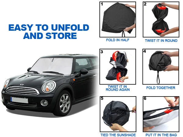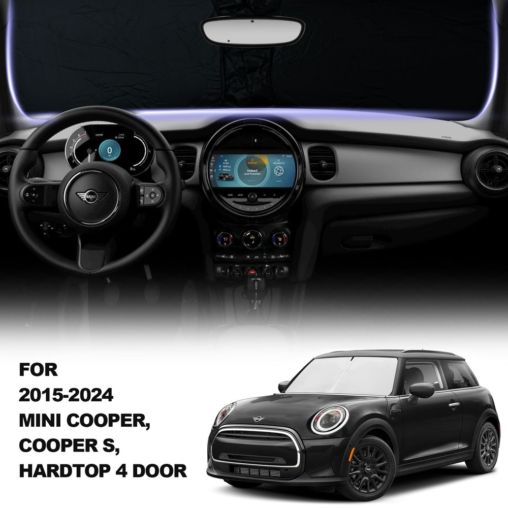 Windshield Sun ShadeFoldable Front Window UV Block Visor For 2015-23 Mini Cooper Fitment For Mini Cooper, Cooper S, Hardtop 4 Door 2015-2023 Features Custom Fit : Windshield Shade Cover custom fit for Mini Cooper 2015-2023, Full covered your windshield,No Gap,Perfect fit. Double Thickness Material : Made of 210T Reflective Polyester, Sun Blocker is consist of both double reflective layers and double thermal insulating layers which can make shading and insulation more effective,Keeps your vehicle cool and protects against damage caused by hot sunlight. Air Condition Works Faster & Easier : Using less energy and gas instead of having to wait 15 minutes for your AC to cool off your car, the AC cools faster & easier. Saves your money while making your drive much more comfortable and enjoyable. Great Protection : With windscreen sun shade,it can protect car interior from harmful UV rays and heat that will fade dash and seats.Also when you travel by car or need a nap,our Custom fit Windshield Shades can block 99% sun shine and UV rays,give you and your family more protection. Easy to install & store : The foldable built-in elastic ring design allows you to prop the sunshade up in seconds with ease and fold-away storage making it convenient for daily use. Without falling off.Easy to twist, fold and store in the storage pouch. Specifications Product Name: Car sunshade Suitable for: Front Rear Windshield Material: Reflective Silver-Coated Nylon with foldable metal frame Color: Black + Silver Tone Net Weight: 180g Package Included 1 X Car Front Windshield Sunshade 1 X Sunshade Storage bag Payment We can accept payment of Paypal only. Payment should be made within 7 days after purchasing. (No payment orders eBay system will automatically open unpaid dispute, and this is not good to your account.) Shipping Item will be shipped out within 48 hours upon receipt of your cleared payment. We can not ship on Sundays and other public holidays. International Buyers Please Note: 1, Import duties, taxes and charges are not included in the item price or shipping charges. These charges are the buyer's responsibility. 2, Please check with your countrys customs office to determine what these additional costs will be prior to bidding/buying. Please make sure your address in paypal is correct. we will only follow your address listed in the Paypal payment for the shipment. Combine shipment is not allowed. If you want to combine all the items together, you should still pay for all of the shipping, insurance and handling fee! Returns We offer you 30 days return. The buyer is responsible for return shipping including a result of customer error or wrong item bought: 1) If you received an incorrect, damaged, defective, or item not as described, contact us for a partial/full refund or replacement on our cost. 2) If you want to return the item, please contact us within 60 days after package received. Return products must also be in its original condition: including box, packaging and all other accessories. Feedback 1.We are appreciated your business and to improve our customer service and our commitment to quality. 2.We will leave a positive feedback immediately after payment is received. We appreciate a positive feedback as much as you do. 3.If for some reason there is any issue with the purchase, please contact us prior to leaving feedback, and we will be glad to work with you to have it resolved. Contact Us We do appreciate your purchase from our store. If you are satisfied with the item as well as our service, please kindly leave us a Positive Feedback to help develop our business. Thank you in advance. Our office hours are MONDAY - FRIDAY 9:00PM - 18:00PM PST , we do not answer any E-mails or eBay messages on weekend. All E-mail or eBay message take us around 24 hours to respond. Thanks a lot. Windshield Sun ShadeFoldable Front Window UV Block Visor For 2015-23 Mini Cooper Fitment For Mini Cooper, Cooper S, Hardtop 4 Door 2015-2023 Features Custom Fit : Windshield Shade Cover custom fit for Mini Cooper 2015-2023, Full covered your windshield,No Gap,Perfect fit. Double Thickness Material : Made of 210T Reflective Polyester, Sun Blocker is consist of both double reflective layers and double thermal insulating layers which can make shading and insulation more effective,Keeps your vehicle cool and protects against damage caused by hot sunlight. Air Condition Works Faster & Easier : Using less energy and gas instead of having to wait 15 minutes for your AC to cool off your car, the AC cools faster & easier. Saves your money while making your drive much more comfortable and enjoyable. Great Protection : With windscreen sun shade,it can protect car interior from harmful UV rays and heat that will fade dash and seats.Also when you travel by car or need a nap,our Custom fit Windshield Shades can block 99% sun shine and UV rays,give you and your family more protection. Easy to install & store : The foldable built-in elastic ring design allows you to prop the sunshade up in seconds with ease and fold-away storage making it convenient for daily use. Without falling off.Easy to twist, fold and store in the storage pouch. Specifications Product Name: Car sunshade Suitable for: Front Rear Windshield Material: Reflective Silver-Coated Nylon with foldable metal frame Color: Black + Silver Tone Net Weight: 180g Package Included 1 X Car Front Windshield Sunshade 1 X Sunshade Storage bag On Jan 10, 2025 at 01:38:51 PST, seller added the following information: