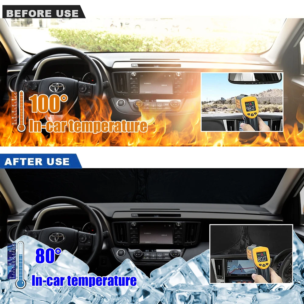 Foldable Sun Shade Visor Windshield Window UV Block Cover For Toyota Rav4 13-18 Fitment For Toyota Rav4 2013-2018 Features Custom Fit : Windshield Shade Cover custom fit for Toyota RAV4 2013 2014 2015 2016 2017 2018 , Full covered your windshield,No Gap,Perfect fit. Double Thickness Material : Made of 210T Reflective Polyester, Sun Blocker is consist of both double reflective layers and double thermal insulating layers which can make shading and insulation more effective,Keeps your vehicle cool and protects against damage caused by hot sunlight. Air Condition Works Faster & Easier : Using less energy and gas instead of having to wait 15 minutes for your AC to cool off your car, the AC cools faster & easier. Saves your money while making your drive much more comfortable and enjoyable. Great Protection : With windscreen sun shade,it can protect car interior from harmful UV rays and heat that will fade dash and seats.Also when you travel by car or need a nap,our Custom fit Windshield Shades can block 99% sun shine and UV rays,give you and your family more protection. Easy to install & store : The foldable built-in elastic ring design allows you to prop the sunshade up in seconds with ease and fold-away storage making it convenient for daily use. Without falling off.Easy to twist, fold and store in the storage pouch. Specifications Product Name: Car sunshade Suitable for: Front Rear Windshield Material: Reflective Silver-Coated Nylon with foldable metal frame Color: Black + Silver Tone Net Weight: 190g Package Included 1 X Car Front Windshield Sunshade 1 X Sunshade Storage bag Payment We can accept payment of Paypal only. Payment should be made within 7 days after purchasing. (No payment orders eBay system will automatically open unpaid dispute, and this is not good to your account.) Shipping Item will be shipped out within 48 hours upon receipt of your cleared payment. We can not ship on Sundays and other public holidays. International Buyers Please Note: 1, Import duties, taxes and charges are not included in the item price or shipping charges. These charges are the buyer's responsibility. 2, Please check with your countrys customs office to determine what these additional costs will be prior to bidding/buying. Please make sure your address in paypal is correct. we will only follow your address listed in the Paypal payment for the shipment. Combine shipment is not allowed. If you want to combine all the items together, you should still pay for all of the shipping, insurance and handling fee! Returns We offer you 30 days return. The buyer is responsible for return shipping including a result of customer error or wrong item bought: 1) If you received an incorrect, damaged, defective, or item not as described, contact us for a partial/full refund or replacement on our cost. 2) If you want to return the item, please contact us within 60 days after package received. Return products must also be in its original condition: including box, packaging and all other accessories. Feedback 1.We are appreciated your business and to improve our customer service and our commitment to quality. 2.We will leave a positive feedback immediately after payment is received. We appreciate a positive feedback as much as you do. 3.If for some reason there is any issue with the purchase, please contact us prior to leaving feedback, and we will be glad to work with you to have it resolved. Contact Us We do appreciate your purchase from our store. If you are satisfied with the item as well as our service, please kindly leave us a Positive Feedback to help develop our business. Thank you in advance. Our office hours are MONDAY - FRIDAY 9:00PM - 18:00PM PST , we do not answer any E-mails or eBay messages on weekend. All E-mail or eBay message take us around 24 hours to respond. Thanks a lot. Foldable Sun Shade Visor Windshield Window UV Block Cover For Toyota Rav4 13-18 Fitment For Toyota Rav4 2013-2018 Features Custom Fit : Windshield Shade Cover custom fit for Toyota RAV4 2013 2014 2015 2016 2017 2018 , Full covered your windshield,No Gap,Perfect fit. Double Thickness Material : Made of 210T Reflective Polyester, Sun Blocker is consist of both double reflective layers and double thermal insulating layers which can make shading and insulation more effective,Keeps your vehicle cool and protects against damage caused by hot sunlight. Air Condition Works Faster & Easier : Using less energy and gas instead of having to wait 15 minutes for your AC to cool off your car, the AC cools faster & easier. Saves your money while making your drive much more comfortable and enjoyable. Great Protection : With windscreen sun shade,it can protect car interior from harmful UV rays and heat that will fade dash and seats.Also when you travel by car or need a nap,our Custom fit Windshield Shades can block 99% sun shine and UV rays,give you and your family more protection. Easy to install & store : The foldable built-in elastic ring design allows you to prop the sunshade up in seconds with ease and fold-away storage making it convenient for daily use. Without falling off.Easy to twist, fold and store in the storage pouch. Specifications Product Name: Car sunshade Suitable for: Front Rear Windshield Material: Reflective Silver-Coated Nylon with foldable metal frame Color: Black + Silver Tone Net Weight: 190g Package Included 1 X Car Front Windshield Sunshade 1 X Sunshade Storage bag On Feb 2, 2025 at 04:38:19 PST, seller added the following information: