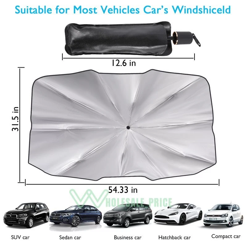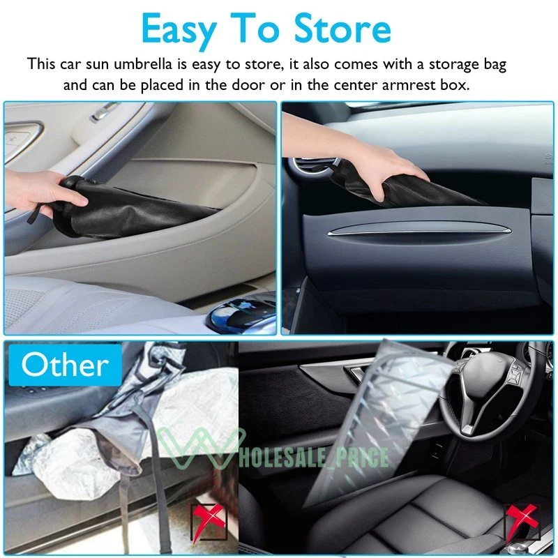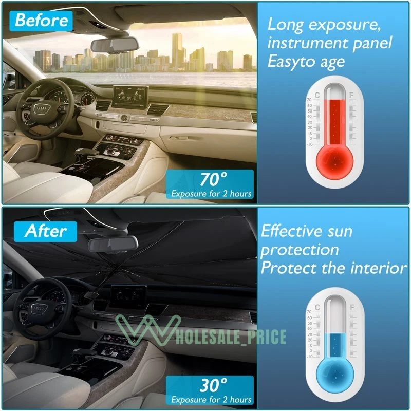 Parasol para coche, cubierta de parabrisas UV, plegable, aislamiento térmico, ac Parasol para coche, cubierta de parabrisas UV, plegable, aislamiento térmico, ac About Shipping and our Advantages ✅ Fast & Free Shipping From US Local Stock on ALL Orders ✅ Most Items Delivered in 2-6 Business Days ✅ ALL orders ship within 1 business day with Tracking Number ✅ QUICKLY Reply within24 Working Hours ✅ANY PROBLEM please email us before feedback, thanks! Add our listing to Watchlist Or Add to Cart , you will get more discount!!! Why use a car awning in summer? UV rays can damage a vehicle's electronics, dashboard, leather and seats. Exposure to high temperatures can even produce harmful gases such as formaldehyde. The windshield cover effectively blocks UV rays and heats up. They are designed to keep the interior of your vehicle cool and prevent damage from the hot sun. What is the use of the car sun visor? UV rays and sun protection Internal device protection Cool indoor environment, comfortable experience Quick and easy installation Easy to carry and store Protect your dashboard Advantage: 【New Design】 : Our windshield parasols are made of heat-resistant and high-density ultraviolet reflective environmentally friendly materials, effectively blocking the sun and keeping the car cool. No harmful gas will be generated under high temperatures, keeping the air in the car fresh. 【Effective Sun Protection】 : It has effective anti-ultraviolet and sun protection functions (occlusion rate exceeds 99%!) to prevent the damage of ultraviolet and heat to the electronic equipment inside the car; they can also prevent the fading and cracking of the dashboard. 【Use and storage】 : no need to install, open the parasols when parking, put in front of the windshield and clamped by the sunshade. The parasols can be easily closed when not in use, without occupying space.(with storage bag) 【Perfect gift】 : The windshield parasols will be the best car gift choice for car lovers. It will provide advanced protection and will not let the sun burn your car electronic instrument accessories or your moods. Feature: -Titanium silver coated with silver glue coating: UV blocking rate>99% to prevent interior aging. - Frosted handle design : Effectively prevent slipping, black metal parasols bone:Holding more stable . -Umbrella stand with solitude: The umbrella surface is curved and concave to expand the effect of reflecting ultraviolet and thermal energy. -Convenient storage: Compact and only take up little space. -6 layers of Nano-insulation material: As cool protection cover: Reflection + shading, more professional sun protection, better light penetration. -360° full surround and extended edge design: Prevent scratches on the interior of the car. Specification: Umbrella cloth: Thickened titanium silver cloth Sunscreen: UPF 50+ Color: black+silver Size:80x138cm /31.5*54.33inch,65x120cm/25.59*47.24inch Package including: 1 x Car Windshield Umbrella 1 x Storage Bag ================================================== Feedback Your Satisfaction is our main goal and your feedback is very important to us. We want our customers to be 100% satisfied with their order. If you are not satisfied, please let us know before leaving feedback. When you receive your order, please take a moment to leave us positive feedback. 5 star rating to us is appreciated, vital and very valuable to the continued success of our business. About us 1. We are a professional wholesale company. High product quality, reasonable prices, excellent customer service and a reliable credit standing is our tenet. 2. If you like our products, please add our eBay shop to your "My Favorites" list. 3. We maintain high standards of excellence and strive for 100% customer satisfaction! Feedback is very important to us. We request that you contact us immediately BEFORE you give us or feedback, so that we can satisfactorily address your concerns. 4. If you have any problem, please feel free to contact us via ebay message, we will reply your email within 24 hours ( except weekends and holidays). If no response within 24 hours, please check the spam in your mail box or try to contact us again. We will do our best to solve your problem as soon as possible. Thank you for your visit and welcome back.