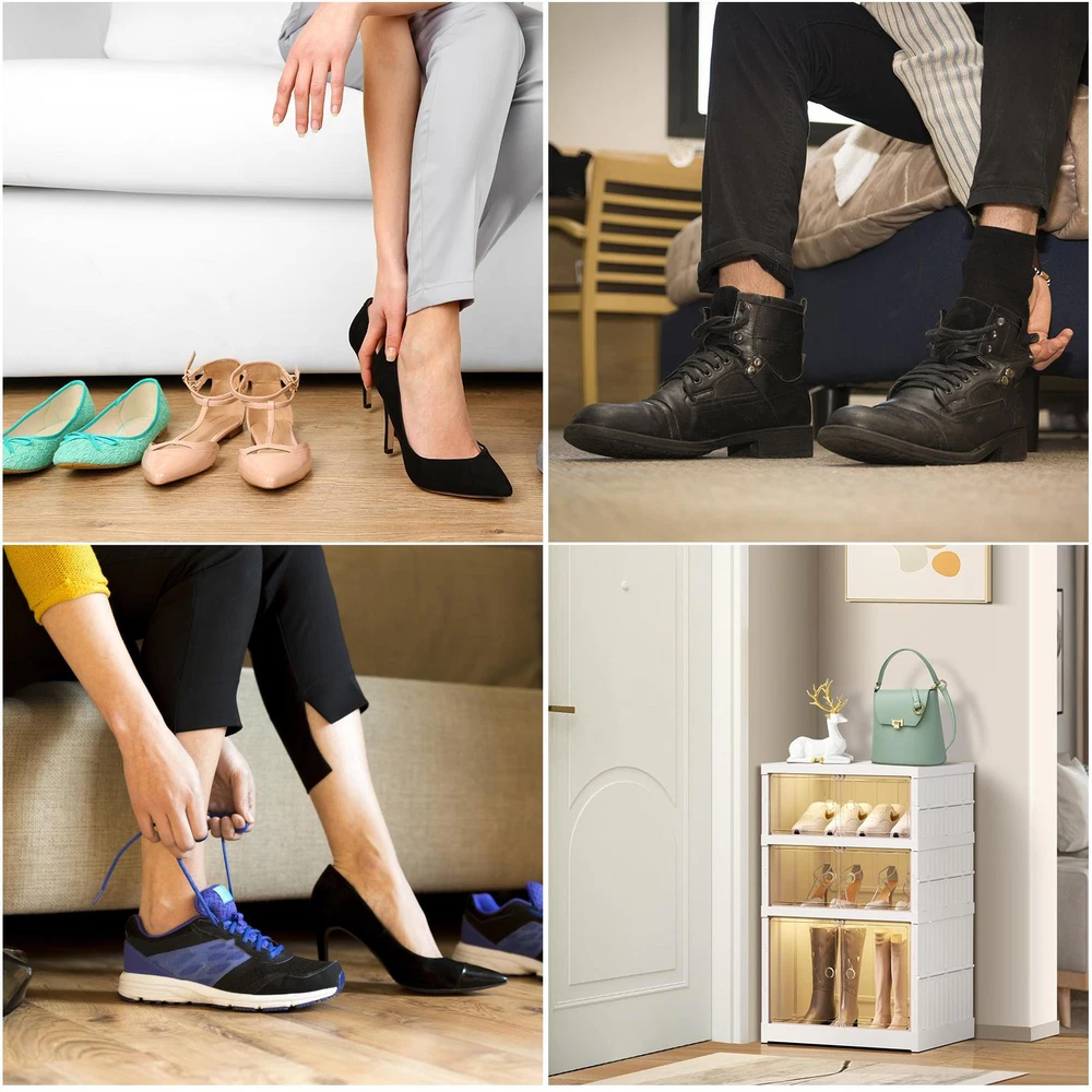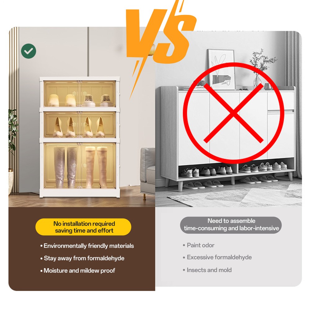 Store category Sign Up Now ! You may also like Product Description Bullet Points: Quick Set-Up: With no assembly tools required, this stackable shoe cabinet can be easily folded and stored. Its smart design maximizes space and saves time on set-up and clean-up, making it the perfect storage solution for any home Optimized Shoe Storage: This folding shoe cabinet can store men's and women's shoes for most types of shoes, featuring a high boot storage design and holds 6 pairs of multi-tiered shoe racks across 3 layers Stylish Innovation: Our folding shoe cabinet features a sleek and fashionable design that compliments any decor. Crafted from high-quality PP+PET material, it reduces dust and boasts super suction power to keep the door firmly shut for added security Effortless Retrieval: Find the shoes you need quickly and easily, with a light brown transparent door that makes it easy to clean and identify your footwear collection Wide Application: Suitable for closet, bedroom, storage room, living room, and garage, this folding shoe cabinet provides versatile storage solutions, ensuring your space stays organized Organize your closet with ease using our 3-layer stackable shoe rack organizer. With super suction power, find the shoes you need quickly and efficiently. Perfect for any closet, this foldable rack will keep your shoes visible and accessible. No more shoe clutter! Specification: Product Name: Folding Shoe Cabinet Number of layers: three layers Specification: 2 short +1 high (4 pairs of shoes + 1 pair of boots) Product size: about 44x34.5x66cm/17.32x13.58x25.98 inches Product weight: about 3.8kg Color: white Packing List: 1* Foldable Shoe Rack Notes: 1. Due to different lighting and screen settings, the item color may be slightly different from the picture. 2. Due to different manual measurements, please allow a 1-2cm difference in size. Payment Delivery details Terms of sales About us Feedback & DSRs Payment Before you palce an order, please kindly make sure that you have a paypal account. We accept PAYPAL payment only. Payment should be completed within 2 days after auction closed, or unpaid dispute will be filed for an closing auction. An unpaid case will be filled after 4 days. Delivery details We ship to your eBay address. Each package will be shipped to US by UPS Regular Parcel with tracking number. Please check your shipping address carefully before checkout, it can't be changed if order completed. All items will be shipped within 1-2 business day upon receipt of payment.Orders placed on weekend will be shipped within 3 days. If you do not receive your item in 7-10 business days.please contact us immediately for further assistance. We will be responsible for any damages or losses incurred in the shipping process. About us We maintain high standards of excellence FIVE STAR and strive for 100% customer satisfaction! Positive Feedback is very important to us. We hope that you contact us immediately Before you give us neutral or negative feedback, so that we can satisfactorily address your concerns. We promise to offer the lowest price and high quality produce. Our working time: From Monday to Friday(9:30 am to 18:00pm), we don't working on holidays ,hope you can understand and know that , thank you. Please always talk to us via ebay Message. We appreciate your business and look forward to growing our e-Bay sales with satisfied customers. Feedback Contact us If you have any questions, please feel free to contact with us by ebay Message during our business hours ( 9:30a.m. to 5:30 p.m.), or email us through eBay, we will try our best to help you to resolve it. For any presale or after-sale questions,please do feel free to email us! Due to the time difference, each email will be replied within 1 working day,and weekend will be delayed a bit. Feedback