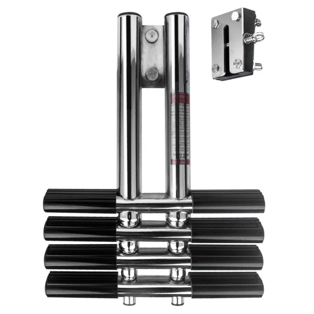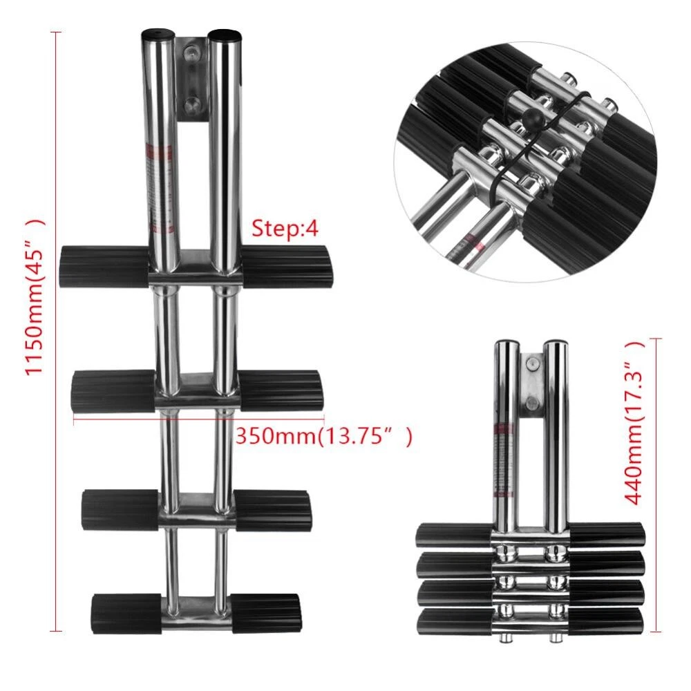 Description ➽ Specifications Polished stainless steel has better anti-corrosive performance; Easy boarding with open step when swimming and diving; Heavy Duty - rated to 400 lbs boarding weight; Length displayed:45" length stowed:17.3" width:13-3/4"; Package including: 1*ladder 1*transom mounting bracket. ▲ Feature Heavy duty all welded stainless steel pontoon ladder. Unique universal self supporting design requires no support. extra wide telescoping steps for more comfort when boarding. Comfortable handrails for easy boarding. Stainless Steel tubing * Telescopes and flips up *Rear Entry Ladder * 400 lb. capacity Ladder is constructed of 1.5" diameter. Steps telescope closed; flips up for easy storage; Comfortable 2" Wide steps. Hole Diameter: 1/4" ➽ Note ➩We provide clear pictures, measurements where possible. Please check as much as possible to make sure the item is the one that you need. ➩ Please allow 0.1-0.5 inch difference due to manual measurement.(1 inch=25.4 mm) ➩The color of the actual items may slightly different from the listing images due to different computer screen, thanks for your understanding. On Dec 30, 2025 at 01:57:06 PST, seller added the following information: