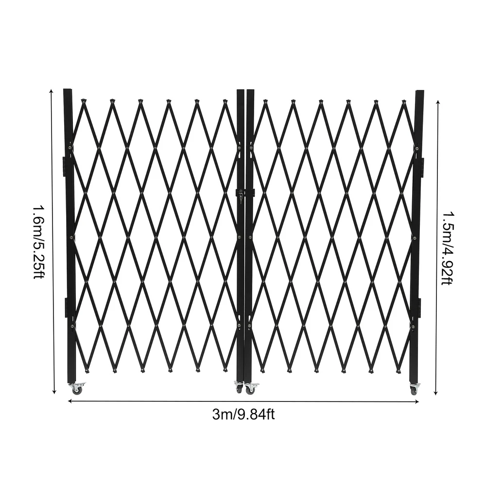 Specifications Color: Black Material: Iron, Aluminum Alloy Process: Plastic Spraying Shape: Rectangle Pattern: Diamond Style: Modern Special Feature: Expandable Door Type: Double Folding Door Mounting Type: Wall Mount Expanded Size(H*W): 1.6*3m/5.25*9.84ft Package Size: 37*166*8cm/14.56*65.35*3.15inch Net Weight: 18.6kg/41 lbs Gross Weight: 20.8kg/45.85 lbs Package Included 1* Double Folding Security Gate 2* Keys 1* English Manual Other Accessories for Installation. Folding Security Gate Rolling Flexible Expanding Security Barricade Door 1.6*3m Description Description A double-folding security gate is an excellent tool to effectively secure your high-traffic hallways or entryways in any business or industry. Our product features high-quality, sturdy construction, and foldable design, allowing for long-term and convenient use. The safety lock design increases security and four universal wheels ensure flexible movement&safe fixation. It can be set up in a very short time, and you can buy more to form a barrier of any length. Key Features Build to Last: This security gate consists of iron edge columns and aluminum alloy grids with a plastic spraying process to enhance durability. It is corrosion-resistant, anti-rust, and high-strength. Double Foldable Design: It is fully foldable and can be rotated 180° to form&keep an unobstructed opening and complete closing and the aluminum alloy grids allow for convenient pushing and pulling. The foldable design also ensures convenient transport and storage. Security Guardian: The security gate with a lock&lock hasp and two keys provides an entrance in the daytime and increases security at night while maintaining its visibility and allowing unobstructed air circulation, especially for your garage and high flow corridors/entrances of businesses/industries. It also prevents most animals from entering your house. Flexible Movement: The 4 universal wheels (fully equipped with brakes) on the bases allow for easy movement and safe fixation. And the raised bottom can prevent scratching the floor. Modern Appearance: The smooth streamlines, diamond patterns, and versatile black color give this gate a stylish and modern appearance, and the double-door design adds the beauty of symmetry to it. You can hang up some flower baskets or piles of canes on the fence to obtain the visual enjoyment of beauty. Simple Installation&Use: The equipped mounting accessories, simple structure, pre-made hinges, and English manual provide a breeze installation and hassle-free use for you. It can be recessed or surface-mounted. You just drill some holes and install this product correctly on the cement or concrete wall. Easy to Clean: Because of the smooth surface with a plastic spraying treatment, you can wipe the dirt from this product with a wet cloth. Protective Package: To prevent the product from being damaged and bumped during transportation, we packed it with pearl cotton to protect your products to the maximum extent possible. Buy with Confidence: We have been working hard to provide better service and quality for our customers, which is our goal. If there is any problem with our products, please contact us in time. Details Stainless Steel Rivets: The stainless steel rivets, which are corrosion-resistant, reinforce the construction of the security gate and extend its service life. Smooth Edge: The burr-free&smooth edge adds beauty&texture to this product, avoids hurting your hands, and improves the use safety. Application This product can be used as safety doors, and barricade gates seeking protection, and defense. It is suitable for basements, garages, storefronts, kindergartens, schools, shopping malls, hotels, parking lots, parks, gardens, factories, courtyards, power construction sites, construction sites, and other domestic and industrial sites to enhance security. Specifications Color: Black Material: Iron, Aluminum Alloy Process: Plastic Spraying Shape: Rectangle Pattern: Diamond Style: Modern Special Feature: Expandable Door Type: Double Folding Door Mounting Type: Wall Mount Expanded Size(H*W): 1.6*3m/5.25*9.84ft Package Size: 37*166*8cm/14.56*65.35*3.15inch Net Weight: 18.6kg/41 lbs Gross Weight: 20.8kg/45.85 lbs Package Included 1* Double Folding Security Gate 2* Keys 1* English Manual Other Accessories for Installation. Notes Please note whether its size and grid size are what you need. This security gate can be installed on cement/concrete walls, metal side columns, or wood columns provided that it can be used with hinges. Please wear gloves (not included) when installation. Please read the operating manual completely before use. And pay particular attention to the safety instructions included. Please allow the slight color difference caused by the shooting light and 1-3cm error due to manual measurement, and make sure you do not mind before you order. Payment Delivery details Terms of sales About us Contact us Payment We accept ebay payment 。 Fees such as import duties, taxes are not included in the item price or shipping costs. These charges are the buyer's responsibility. Delivery details Shipping: 2-9 working days to: USA Terms of sales We maintain high standards of excellence and strive for hundred percent customer satisfaction. Feedback is very important to us. We hope that you contact us immediately before you give neutral or negative feedback, so that we can address your concerns. It is impossible to address issues if we do not know about them! About us Your satis faction is our ultimate goal. We work hard to earn your trust and future business. Our certified technicians have tested each item before shipping. The unit comes with 1 year limited warranty on all manufacturing defects. a) If you receive a defective item, you may return it or ask for a discount. Please contact us within 14 days after you receive the package. b) What you returned must be intact and in its original packaging as re? u. Customer is responsible for shipping costs of the returned