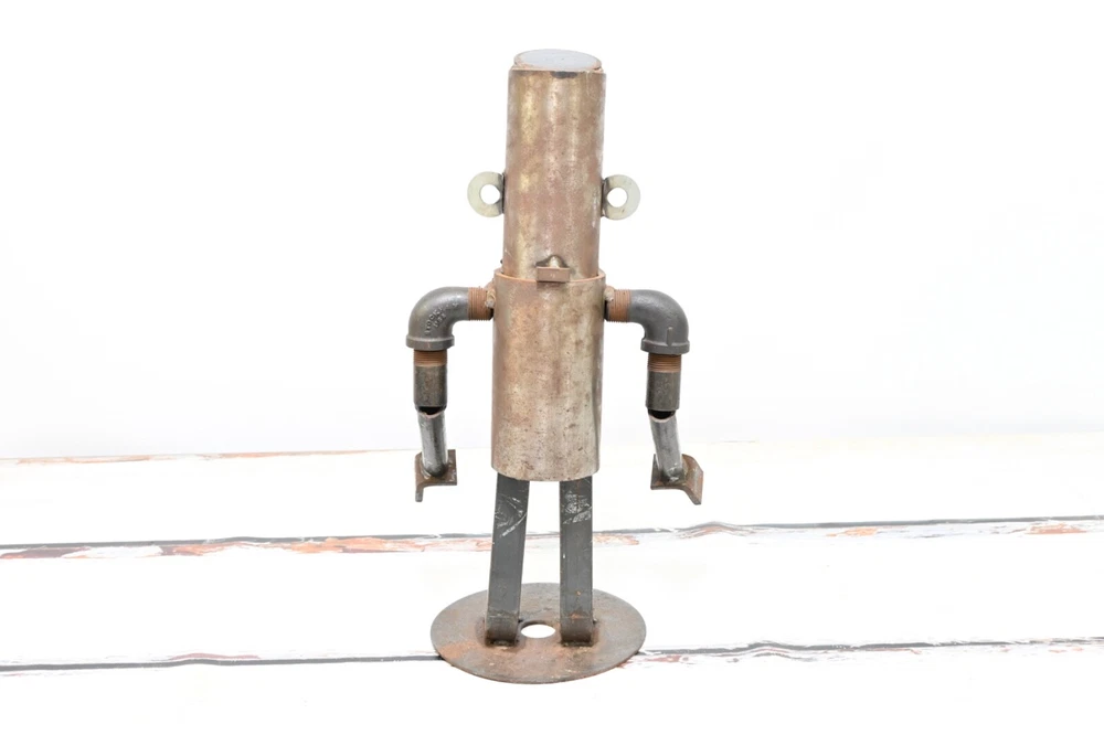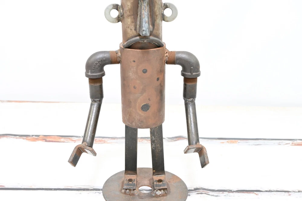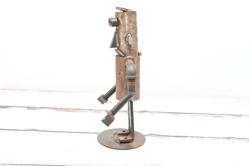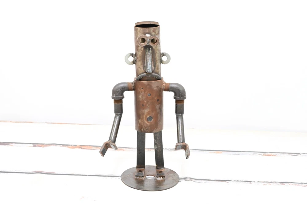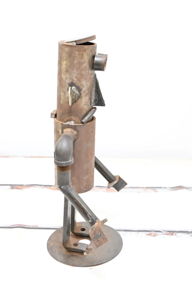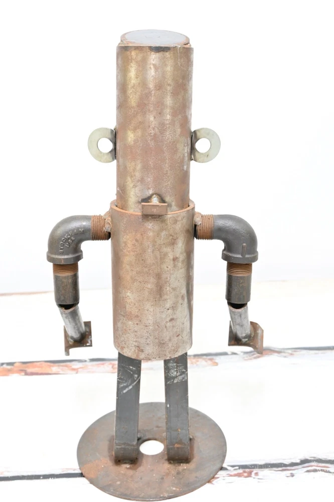 SHIPPING ANNOUNCEMENT------USPS has recently raised their prices, a lot. Previously most orders would ship most cost effectively with USPS. Please compare all 4 methods available under the shipping tab. Up for your consideration is an Industrial Folk Art Piece Vintage Abstract Robot Sculpture - Made With Misc Salvaged Hardware & Metal Pieces. The condition is good to fair. There is wear and light surface rust. Fabulous as a stand alone decor piece or within a grouping Perfect OOAK conversation starter. Size - 18"H x 9.75"L x 7"W 12 pounds If you need your item shipped with a particular carrier let me know. I will always try to pick the least expensive way to ship, that gets item to you in the amount of time you want it or faster. Example if you pick Priority and FedEx is cheaper we go with FedEx. If you pick Smart Post and Priority is cheaper I go with Priority. I then refund the difference. The majority of the items I sell are estate finds. As a result, I describe my items to the best of my ability. My opinion on the condition of each item is completely subjective. Therefore, please enlarge the photos to draw a better conclusion on your own. If you feel you cannot see item well enough please ask questions or request more photos. Color may vary between individual computer monitors. The white spots in the pictures are reflections of my photography lights. I use lights when taking my pictures which sometimes make items appear slightly lighter in color than what they actually are. Please question color if you are looking for something specific so you are not disappointed. YOUR SHIPPING ADDRESS IS A PO BOX PLEASE CHOOSE THE USPS SHIPPING OPTION OR FEDEX SMART POST DEPENDING ON YOUR ZIP CODE OR GIVE AN ALTERNATE ADDRESS. FED EX HOME DELIVERY DOES NOT DELIVER TO PO BOXES. THANK YOU IN ADVANCE. Please ask any questions before you bid .If there is something I did not include in the description chances are I didn't know enough about the item to include it.Make sure you really look at the pictures they are part of the description. We sell mostly vintage items and they are sold as is.We do not purposely omit information or try to deceive our buyers. Above all else we want you to be happy, so please ask questions before bidding. Thanks a lot. Please look carefully at all photos as they are part of the description I am happy to combine shipping so please look at the other items in my store. Please keep in mind not all items can be combined because of size and /or fragility INTERNATIONAL BUYERS – Please Note: Please contact me for shipping quote to your particular country. Import duties, taxes and charges are not included in the item price or shipping charges. These charges are the buyer's responsibility. Please check with your country's customs office to determine what these additional costs will be prior to bidding/buying.: These charges are normally collected by the delivering freight (shipping) company or when you pick the item up – do not confuse them for additional shipping charges. I do not mark merchandise values below value or mark items as "gifts" - US and International government regulations prohibit such behavior. If items are never delivered that is the buyers responsibility, I will keep records on my end as proof that item in fact was shipped. I always compare prices of all major carriers in order to get you the buyer the lowest possible price. Thank you. I am not a professional, I sell on eBay as a hobby. Because I am not a professional I do not inspect or evaluate my items professionally. I do a lot of research before I list my items and try to describe them as thoroughly and accurately as I can. If you have any questions please don't hesitate to ask before you buy. I try to look for messages every hour or two so hopefully there will not be a long delay. I place great importance on your business, and I appreciate that you are looking at my store. I strive for 100%, good feedback ratings. I will do what it takes to make sure you are satisfied with your product and for the service that I provide for you. Please do not leave neutral or negative feedback without first reaching out to me. Thank you, Jim As in almost all vintage items this piece has signs of wear, with some possible scratches and scuffs. All of these things added together is what makes these vintage pieces so attractive to us. It takes us back to an earlier, simple time, when things were not throwaway and disposable. reclaim-bring it back home. repurpose-chances are it won't be used in its original form, the possibilities of use are only limited by your imagination. reuse-too much from our lives is throwaway. We need to find new and creative ways to reuse, so we do not completely drown in the disposable:) PAYMENT AND SHIPPING- Paypal payment is appreciated and due within 3 days. If you have another preferred method of payment please ask.If you need more than three days please let me know. I ship the same day or the next day once payment is received, unless it is a Weekend or Holiday. I will gladly combine shipping for more than one purchase on the same day. If you want to combine with an item that is ending in a few days let me know and will hold the first shipment. If items are never received that is the buyers responsibility, I will keep records on our end as proof that item in fact was shipped. I always compare prices of all major carriers in order to get you the buyer the lowest possible price. Th ank you . #15529