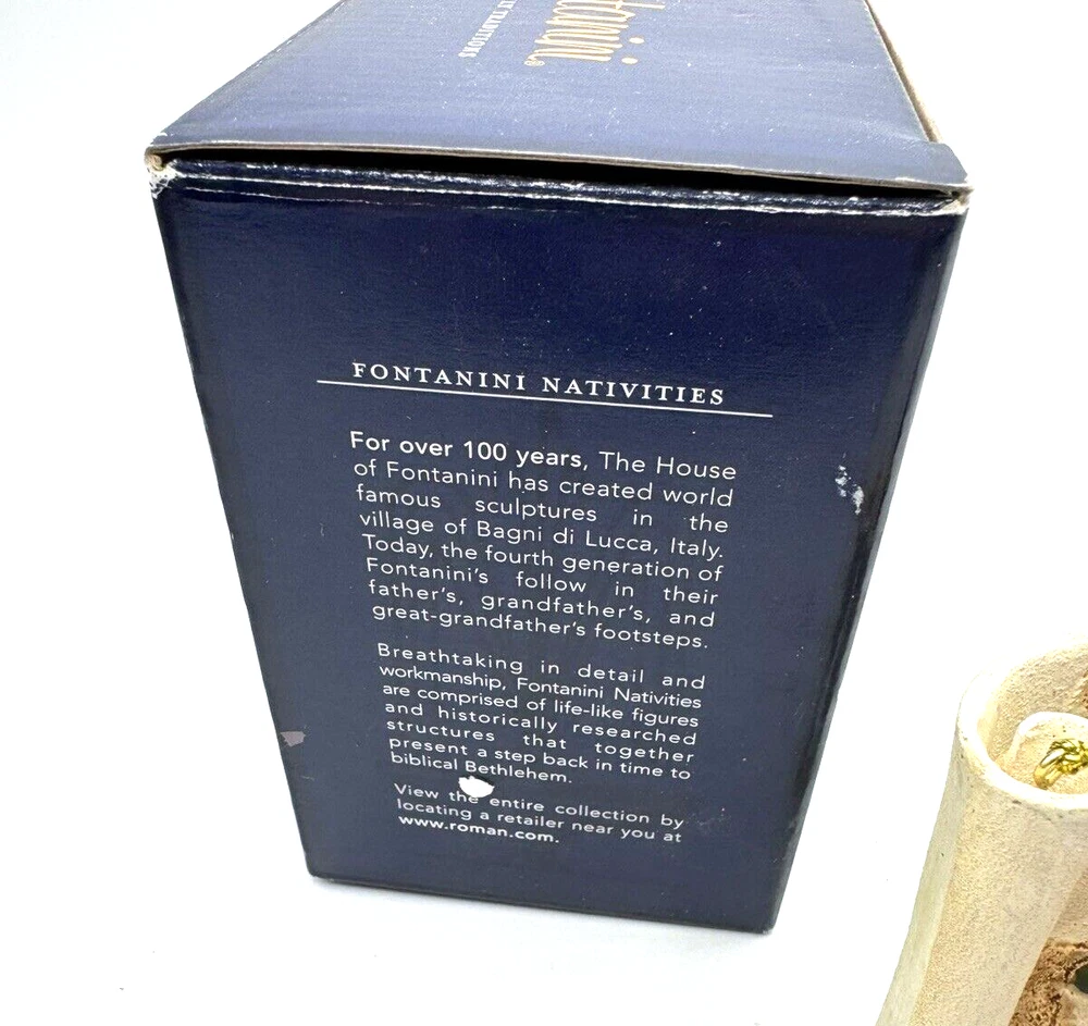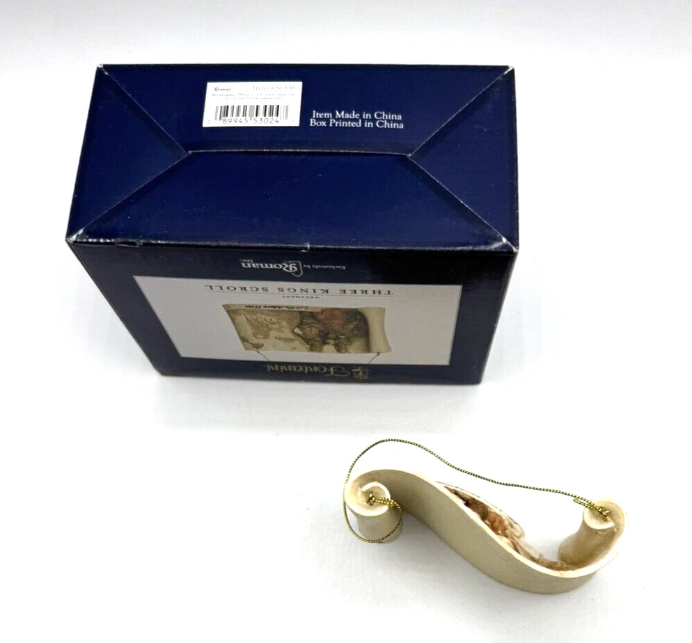 Handmade:NoSubject:Christmas NativityYear:2011Shape:ScrollCharacter:Holy FamilyMaterial:ResinSeller Notes:“some wearing on bottom and on box”Number of Items:1Item Height:2.5 in.Collection:FontaniniMPN:56336Pattern:ScrollDepartment:SeasonalManufacturer:Roman, Inc.Features:HangingType:OrnamentItem Length:4 inYear Manufactured:2011Style:Holy Family ScrollTheme:ChristmasFranchise:FontaniniColor:Multi-ColorOccasion:ChristmasSize:SmallTime Period Manufactured:Current (1991-Now)Set Includes:OrnamentBrand:Fontanini