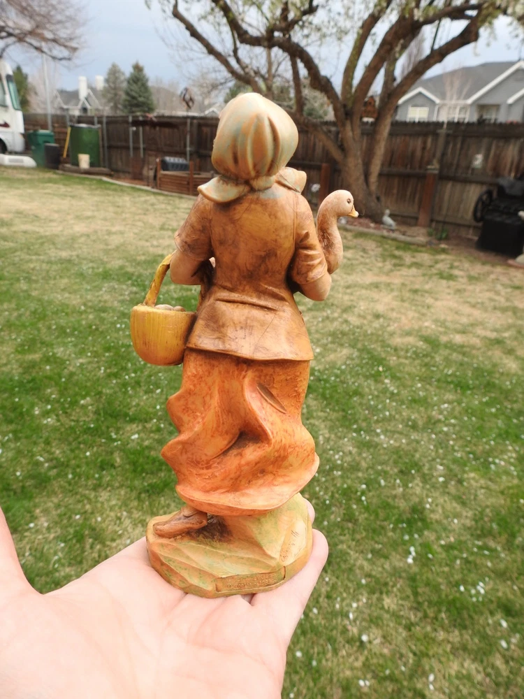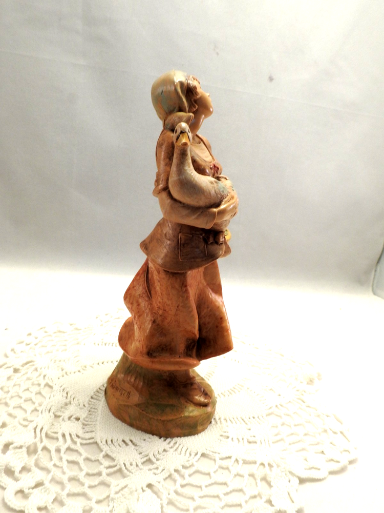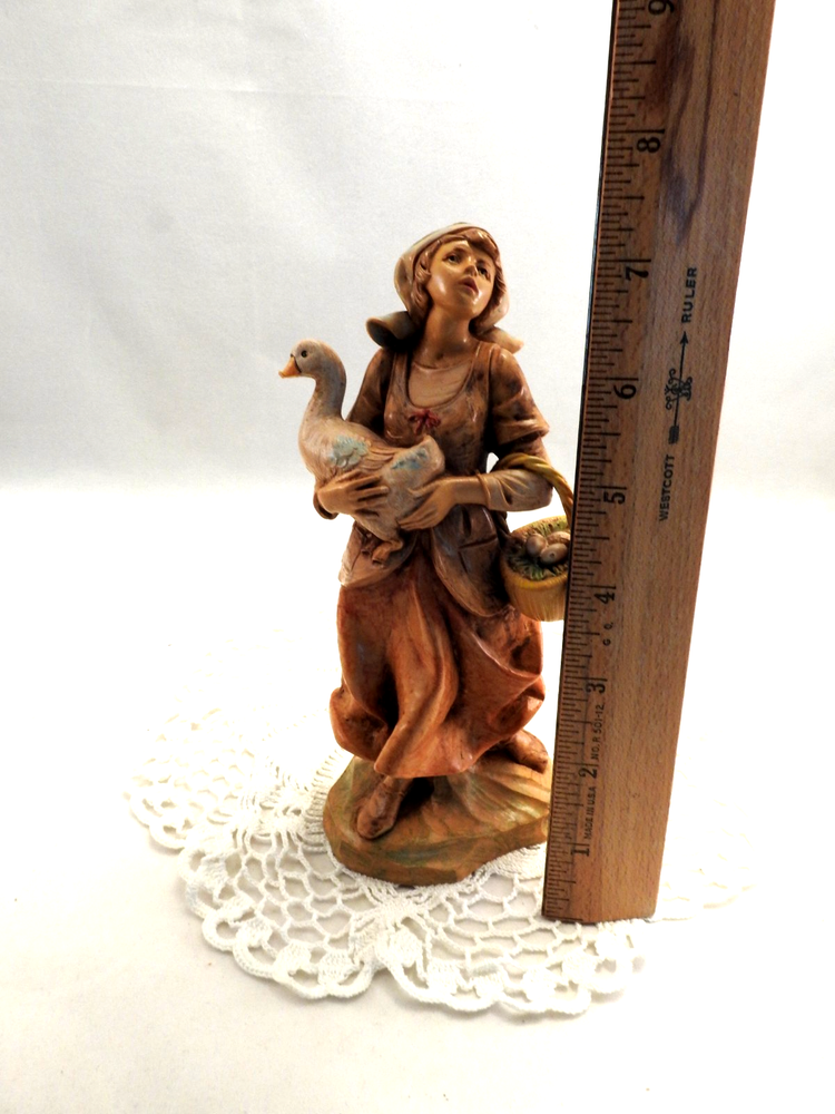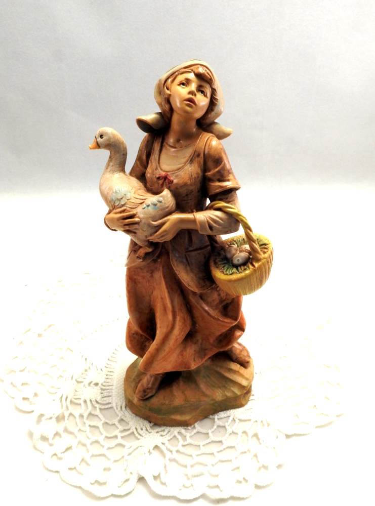 ~ ~ Vintage Fontanini Depose Italy Simonetti Nativity Figurine ~ ~ 1993 DEBORAH Shepherdess Girl / Woman with Goose #349 #52884 7 1/2" Tall 7" Tall Scale This Figurine has been well cared for and is in Very Nice Condition The item in the picture is the item you will receive my pictures are a large part of my description Please see pictures for Figurine details & condition I ship all my items in sturdy boxes for safe arrival with bubble wrap, peanuts, & or tissue paper If you wish to purchase additional items place them 1 at a time in the cart and request an invoice on a computer purchase all together in one payment will save on shipping fees for you. comes from a smoke free home Please Visit My eBay Store for combined shipping Click here to add me to your favorite lists !! I am adding more Hallmarks weekly all quality items at great prices stop by often Please also check my feedback and bid with confidence!! I sell quality items at reasonable prices. Please email me with any questions !!! Comes from a smoke -free home IMPORT DUTIES, TAXES AND CHARGES ARE NOT INCLUDED IN THE ITEM PRICE OR SHIPPING CHARGES. THESE CHARGES ARE THE BUYER'S RESPONSIBILITY. PLEASE CHECK WITH YOUR COUNTRY'S CUSTOMS OFFICE TO DETERMINE WHAT THESE ADDITIONAL COSTS WILL BE PRIOR TO BIDDING/BUYING. You will love the shipping price on this item. Use the shipping calculator with (No hidden fees here). I GLADLY combine auctions for you to help save shipping fees. PLEASE email me that you are still bidding and then wait till all your bidding is over and email me that you are finished. I will send you a combined invoice with one shipping price. Please pay by the 7th day after auction or I reserve the right to relist the item. Thanks for looking and happy bidding!!