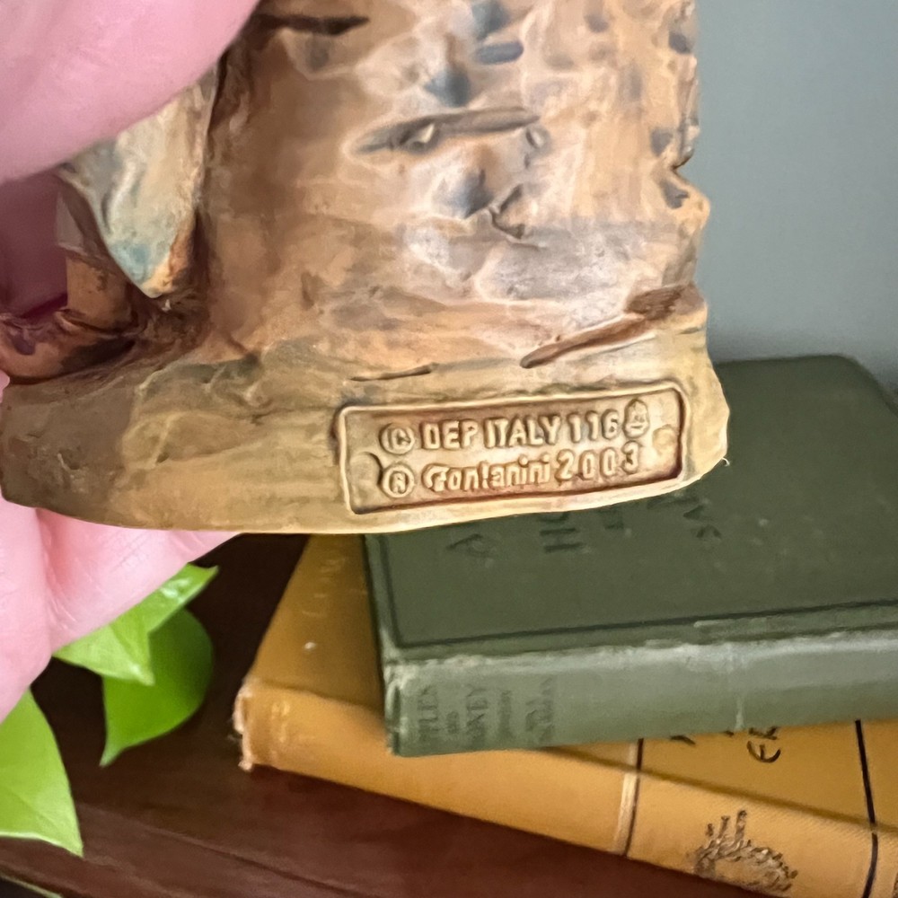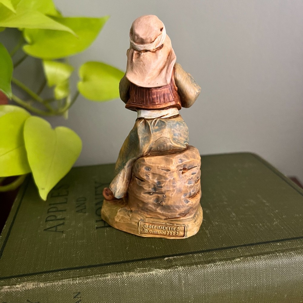 Fontanini nativity village figurine. Marked: • © Fontanini 2003 • Depose Italy • Mold number 116 Made in Italy. This 5 inch scale figure depicts a seated flute player and is part of the Fontanini nativity village collection. Condition: Preowned condition. No cracks or structural damage observed. Paint appears intact. Please review all photos carefully for complete condition details. A nice addition to a Fontanini nativity display.